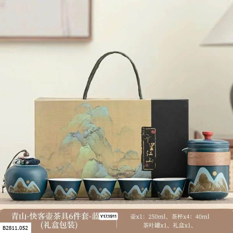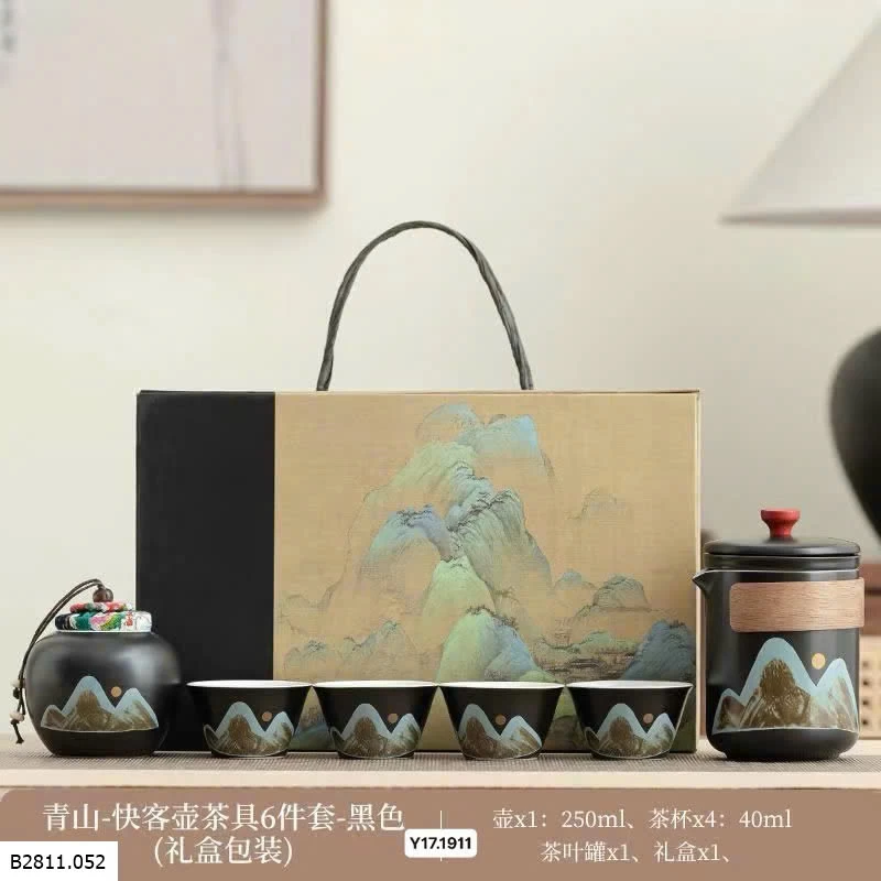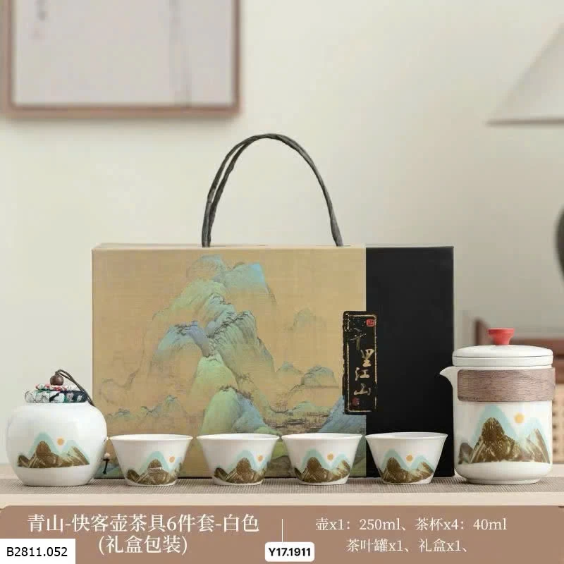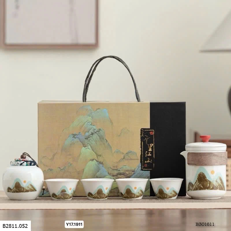 ✨ Bộ gồm: Ấm pha + 4 tách trà + hũ đựng trà + hộp quà sang trọng.