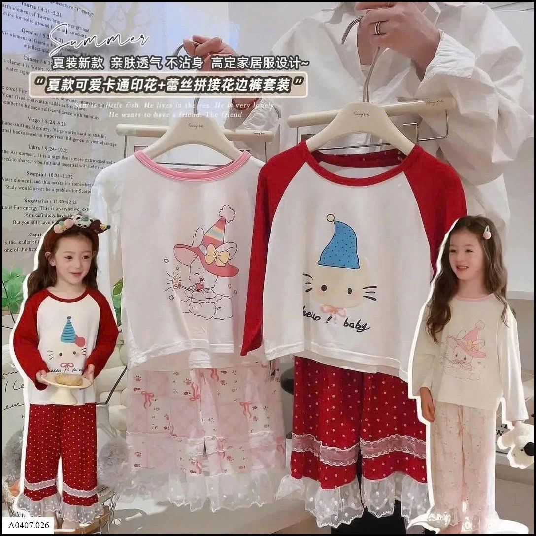 BỘ DÀI TAY CHẤM BI PHỐI REN BG Sỉ giá 90-130 90K 140-170 105K