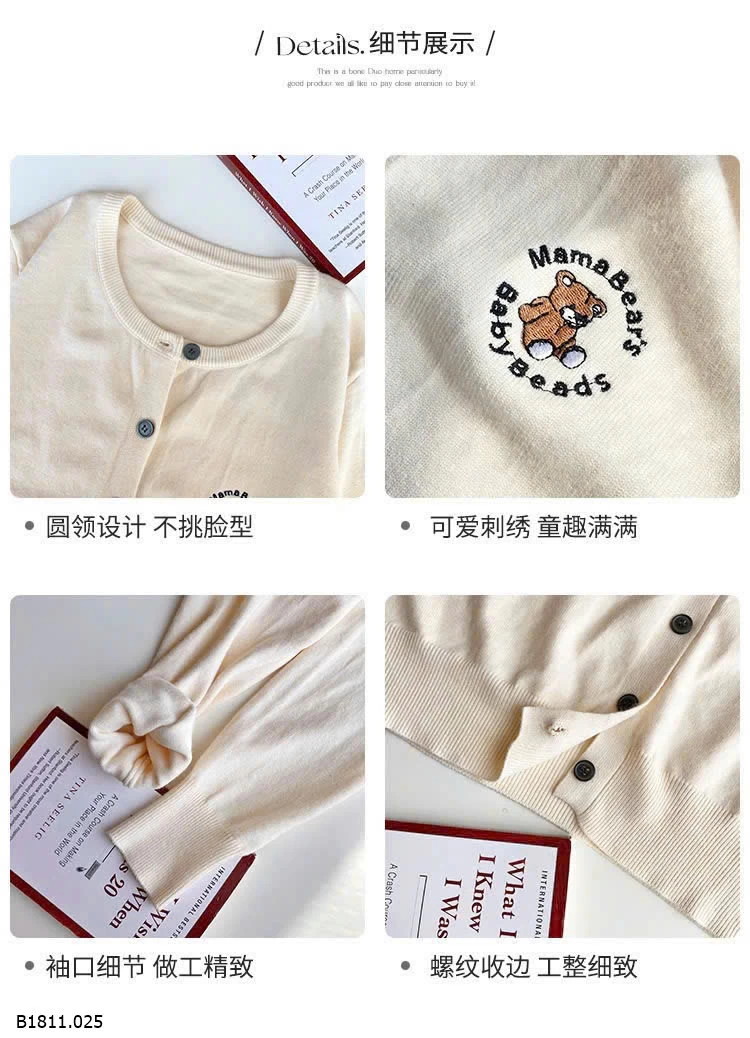 Cardigan gấu thêu siêu xinh Giá sỉ 95k