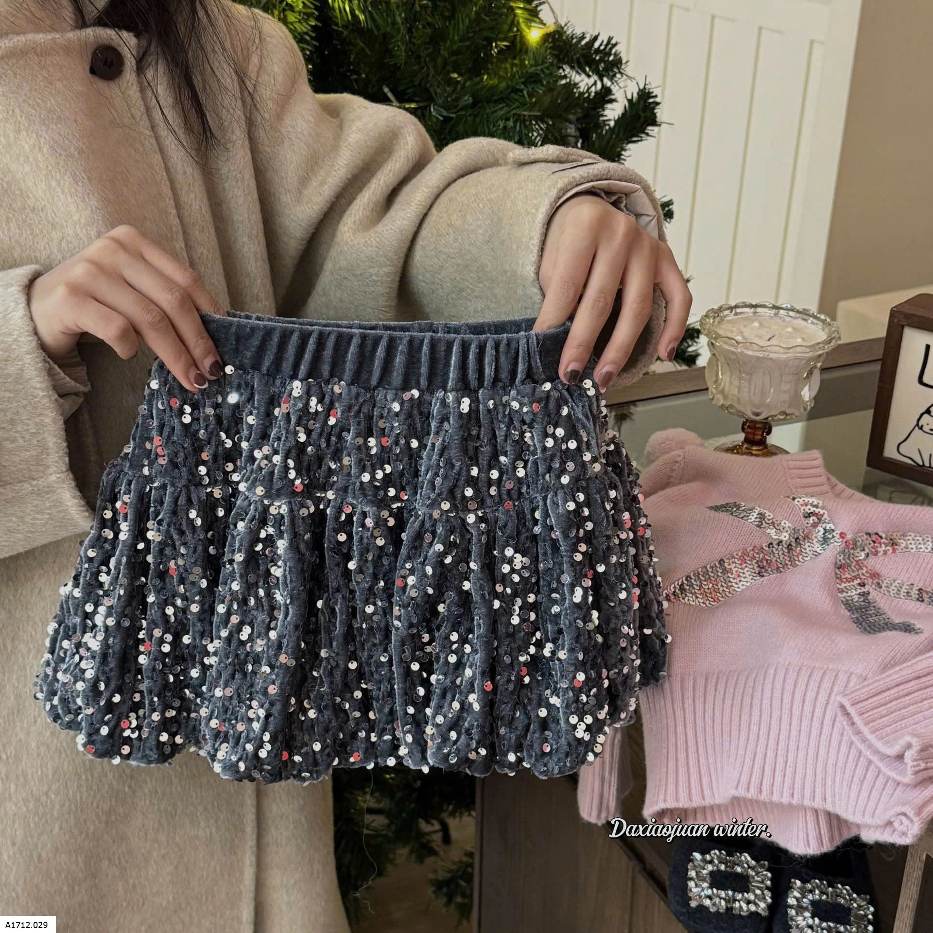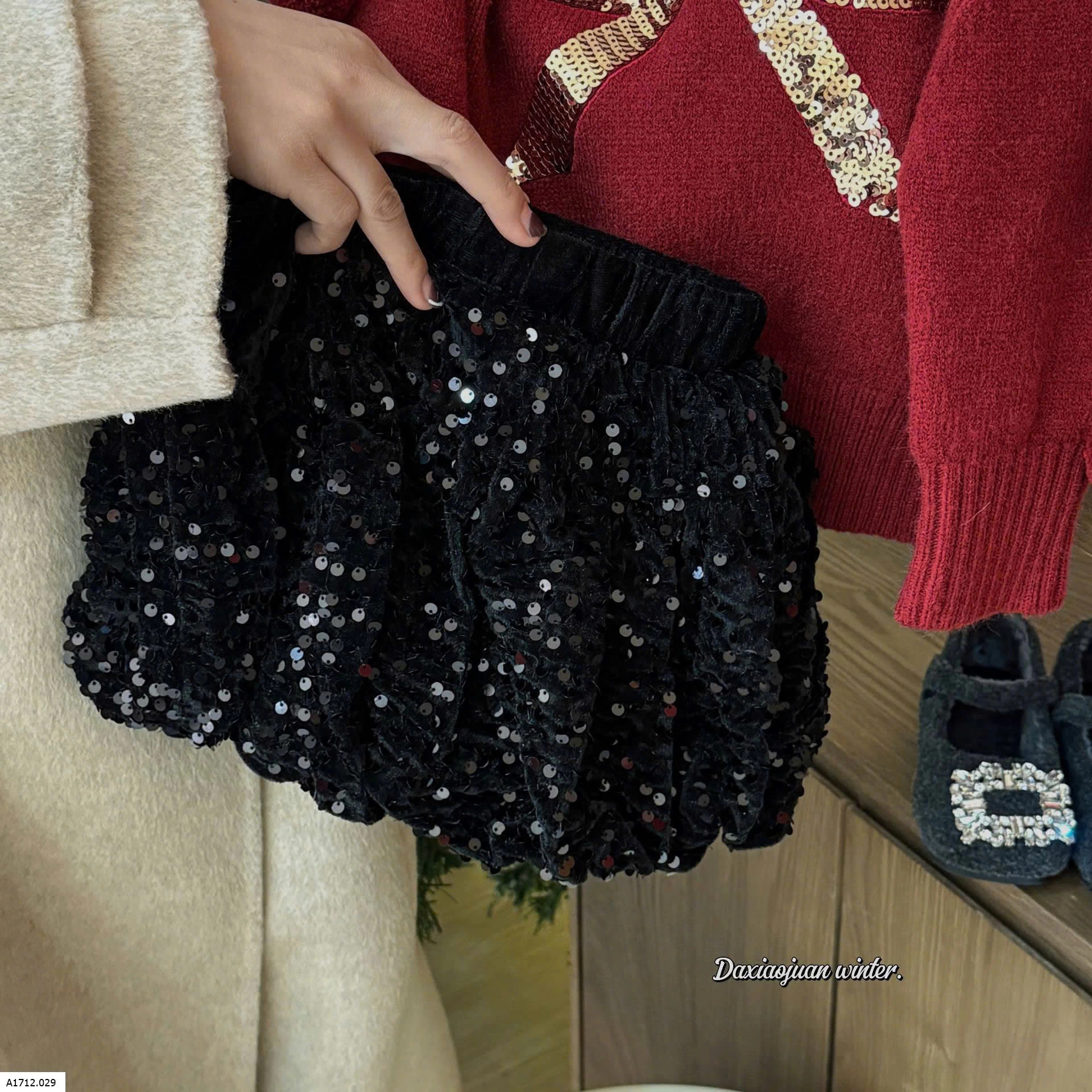 CHÂN VÁY NHUNG SEQIUN CHO BÉ Giá sỉ sz 90-130: 169k sz 140-150: 194k