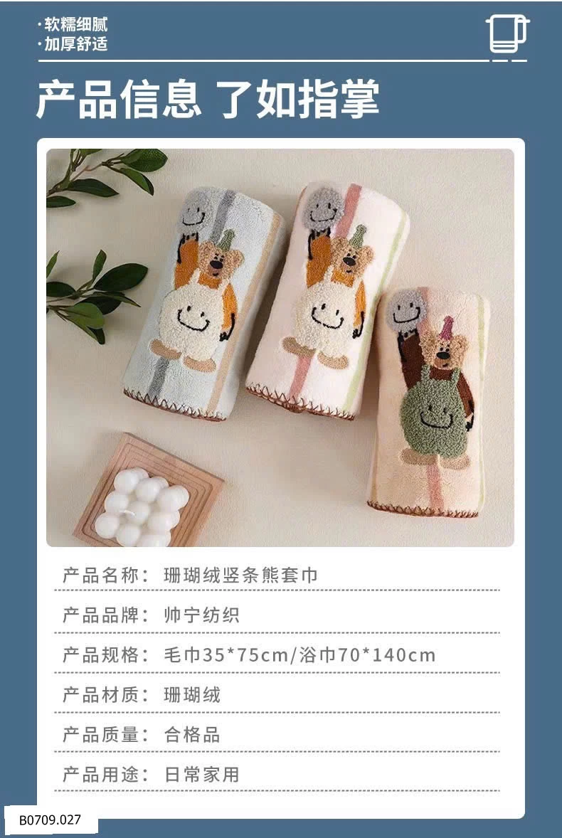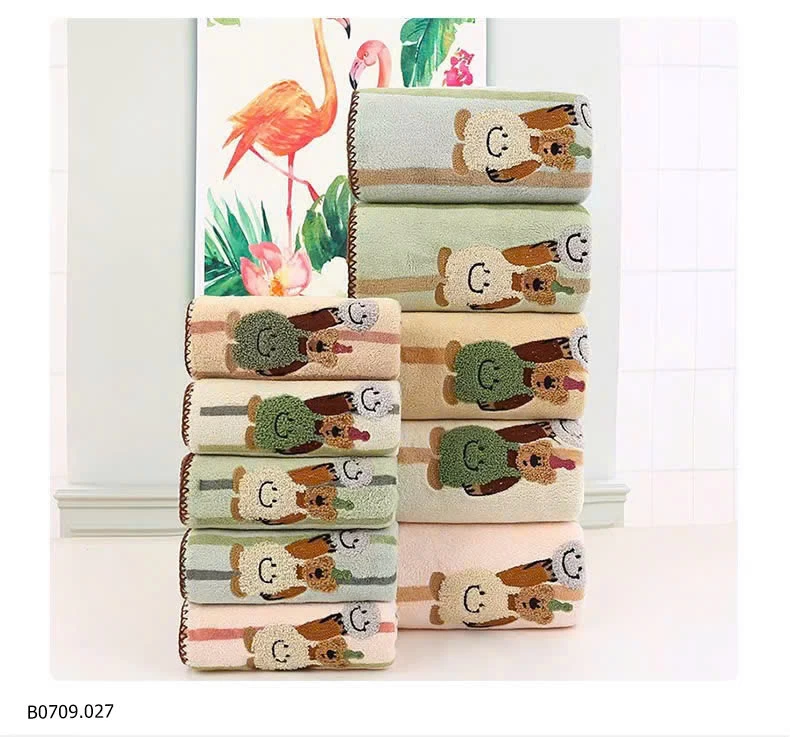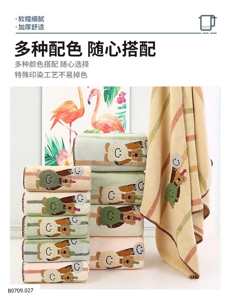 Hôm nay sốp đổi gu sang mẫu khăn xinh xẻo cuteee như nàyyyy Bông vẫn dày và thấm hút tốt nha.