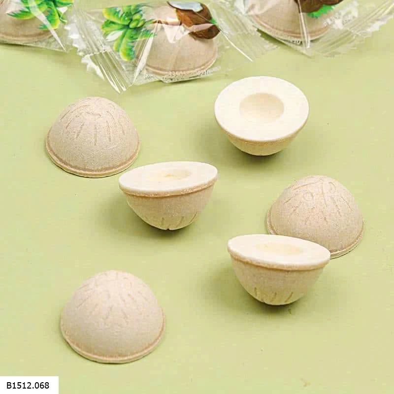 Kẹo được nén thành hình trái dừa, giòn thơm và béooo ngậy. Mỗi viên kẹo được ví với 20 quà dừa 🌝 nghe hơi điêu chắc e dịch không sát nghĩa chứ ăn 1 viên=20 quả dừa chắc bất cmn tử 🌝, nhưng thôi ngon đẹp mắt xin phép bỏ qua 🥹