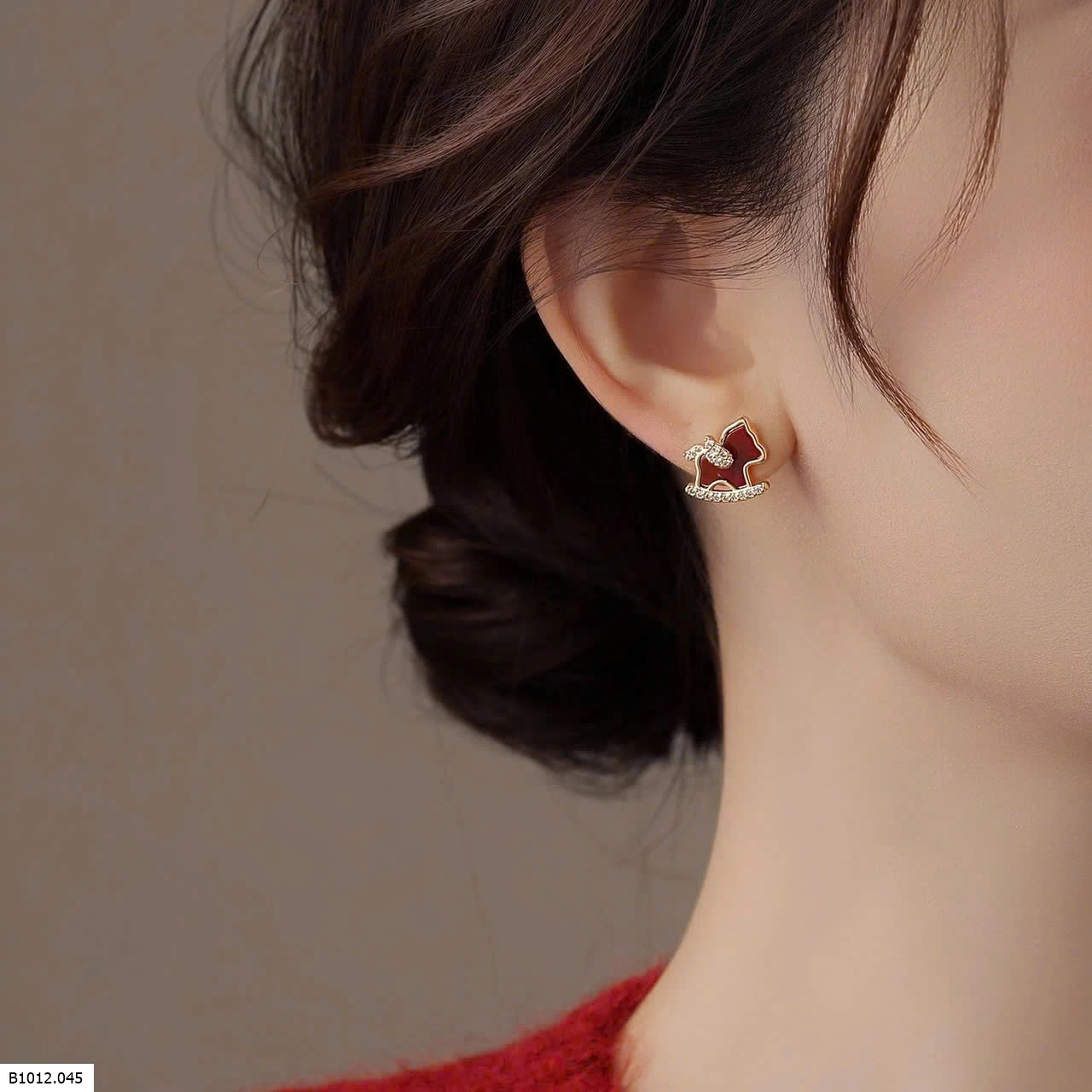 Bong tai ngựa đính đá ZIRCON đỏ sang trọng chuẩn noel tết nha các pác