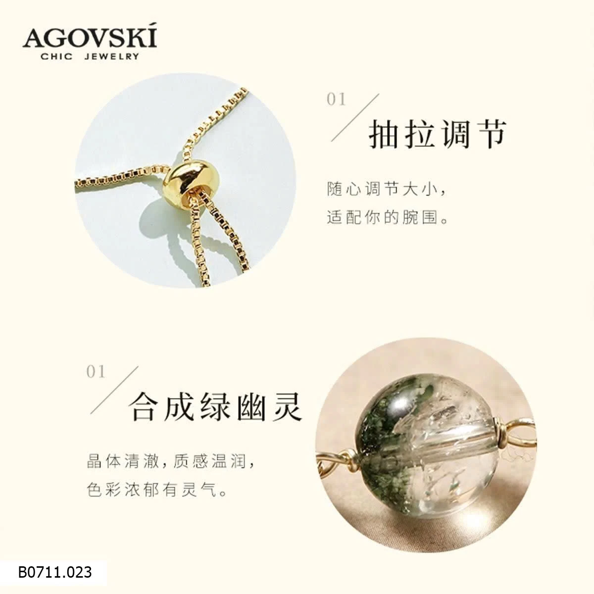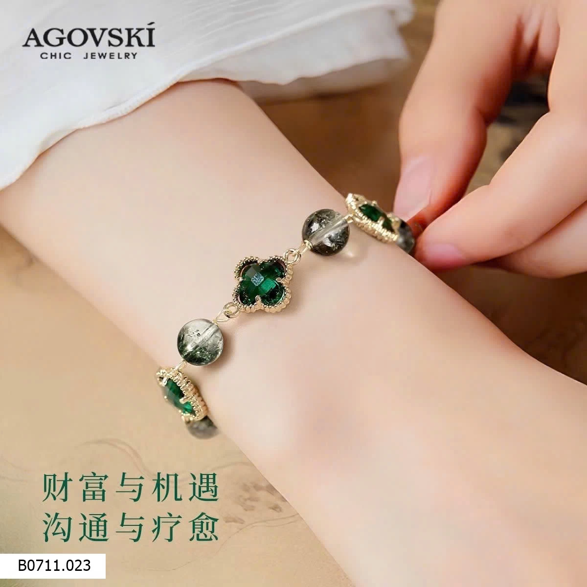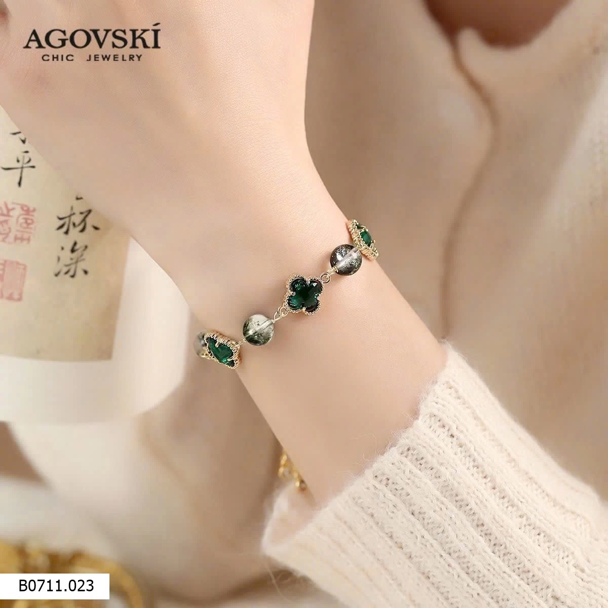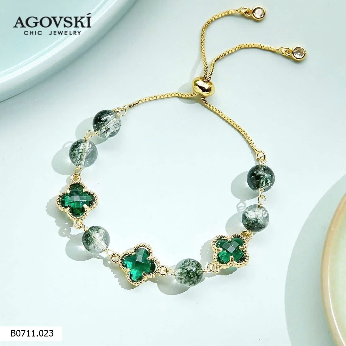 Lắc tay AGOVSKI với thiết kế tinh tế, sang trọng, nổi bật với các viên đá cẩm thạch xanh lấp lánh.