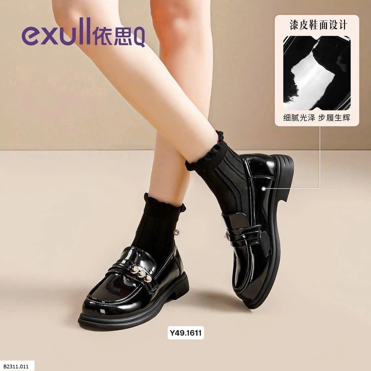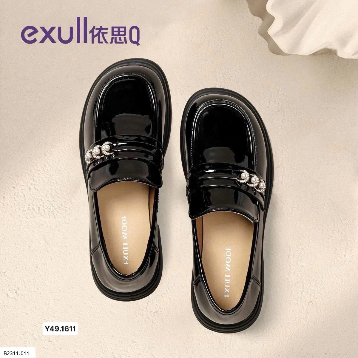 Loafer Exull da bóng mix hạt châu nhân tạo