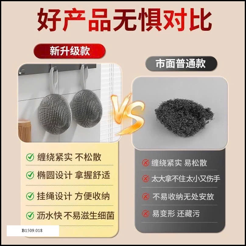 Miếng cọ tròn tròn cọ siu sạch mà không bị rối như mấy loại thông thường , có thiết kế dây treo tiện lợi , chắc chắn , dễ tìm khi cần .