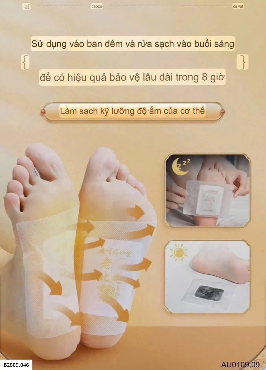 ➖ Cách dùng : Sau khi rửa chân sạch thì lau khô -> Dán miếng dán trực tiếp lên lòng bàn chân - để trong vòng 6-8 tiếng (khuyên dùng khi ngủ - để qua đêm)