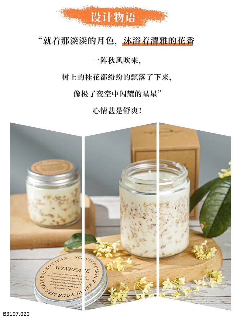 Mùi hương quế hoa (hoa mộc tê) em cực kỳ đam mê. Tìm mãi mới có nến thơm mùi này hãng làm mùi khá đậm. Thơm tự nhiên ko phải mùi thơm công nghiệp ạ