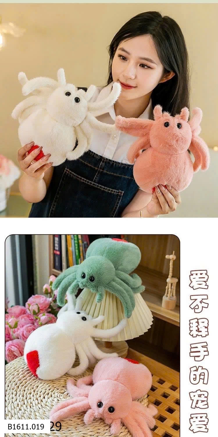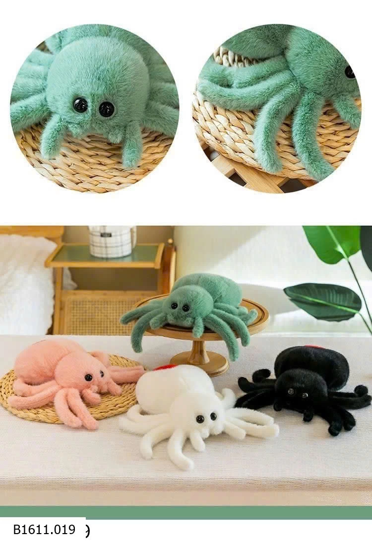 Nhện bông siêu mềm mịn, thiết kế đáng yêu với nhiều màu sắc bắt mắt.