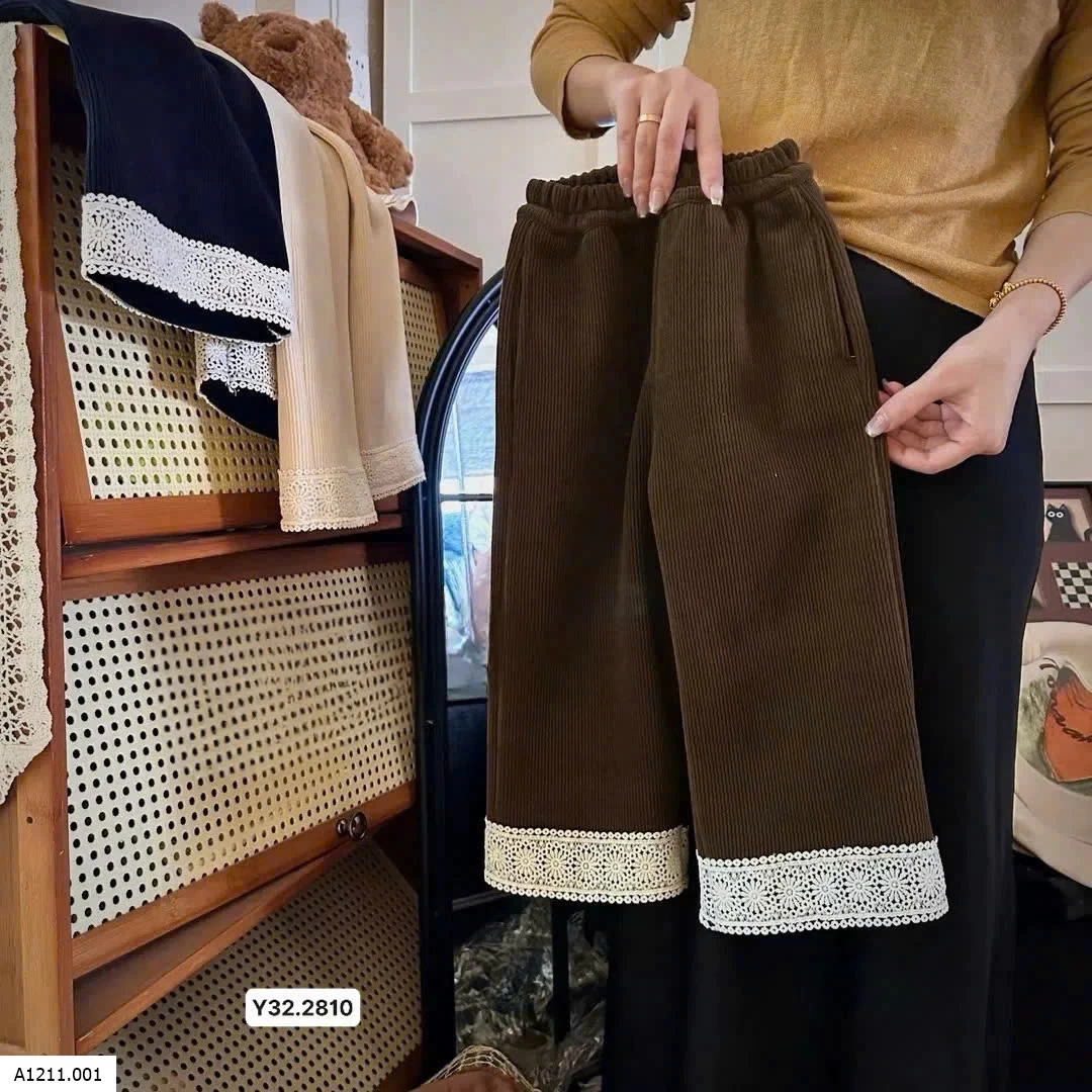 Quần xuông tăm lót nỉ phối gấu ren cho bé gái Giá sỉ 135k
