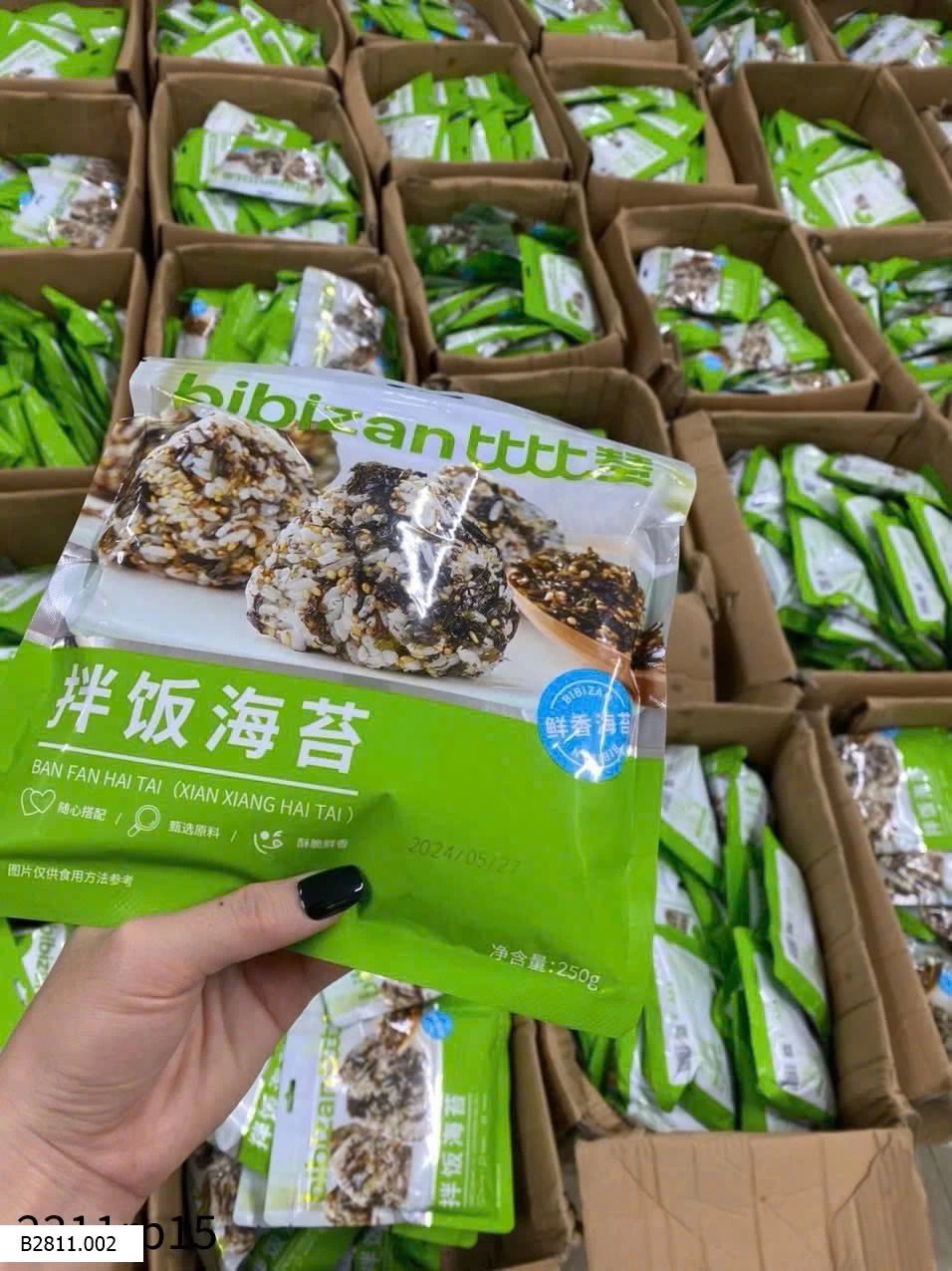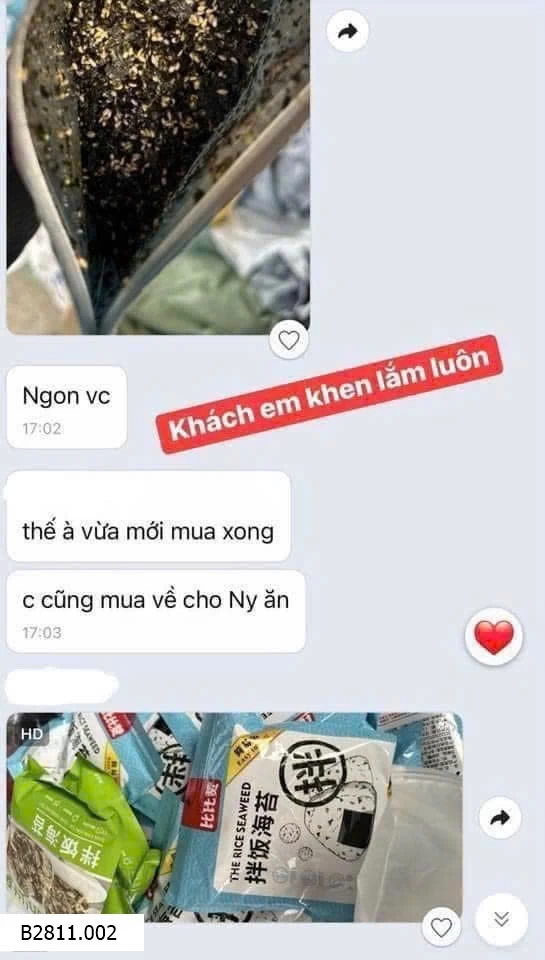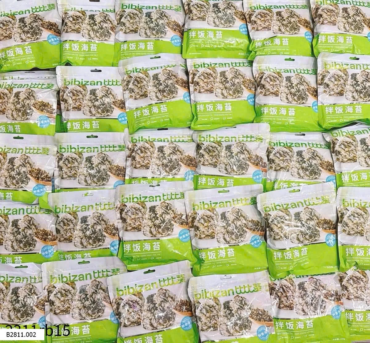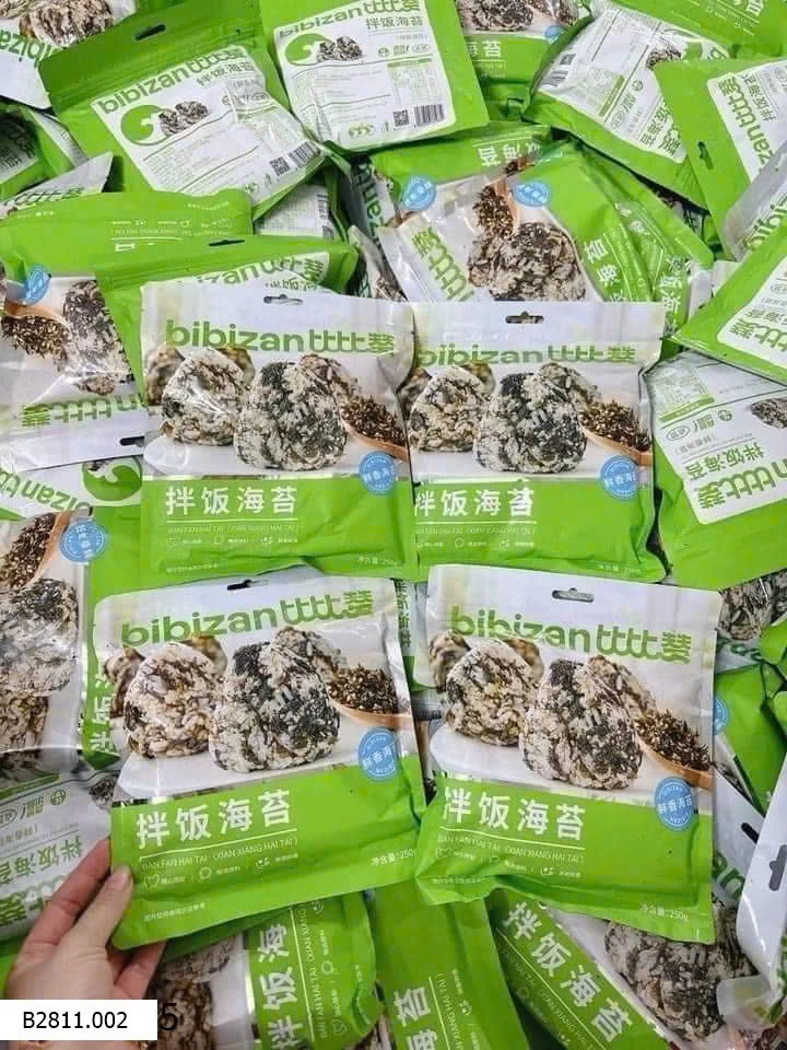Chuẩn hãng BIBIZAN chất lượng đảm bảo luôn ạ. Bọn trẻ nhà em nghiện món này ah. Nay em lại gom. Con em nó lười ăn rau thặc sự luôn !lúc nào cũng chỉ hóng mẹ đặt rong biển về để trộn cơm.