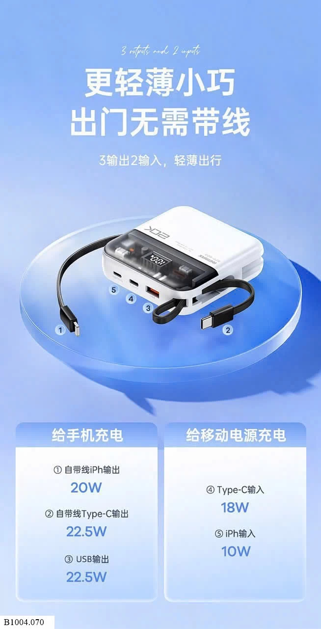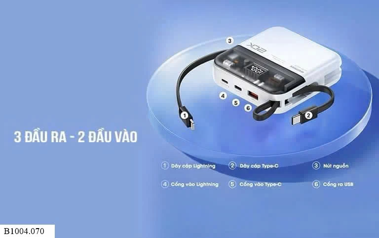 Có sẵn cap Type-C và Lighting theo sạc