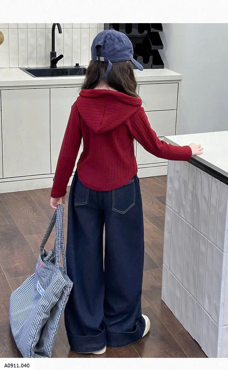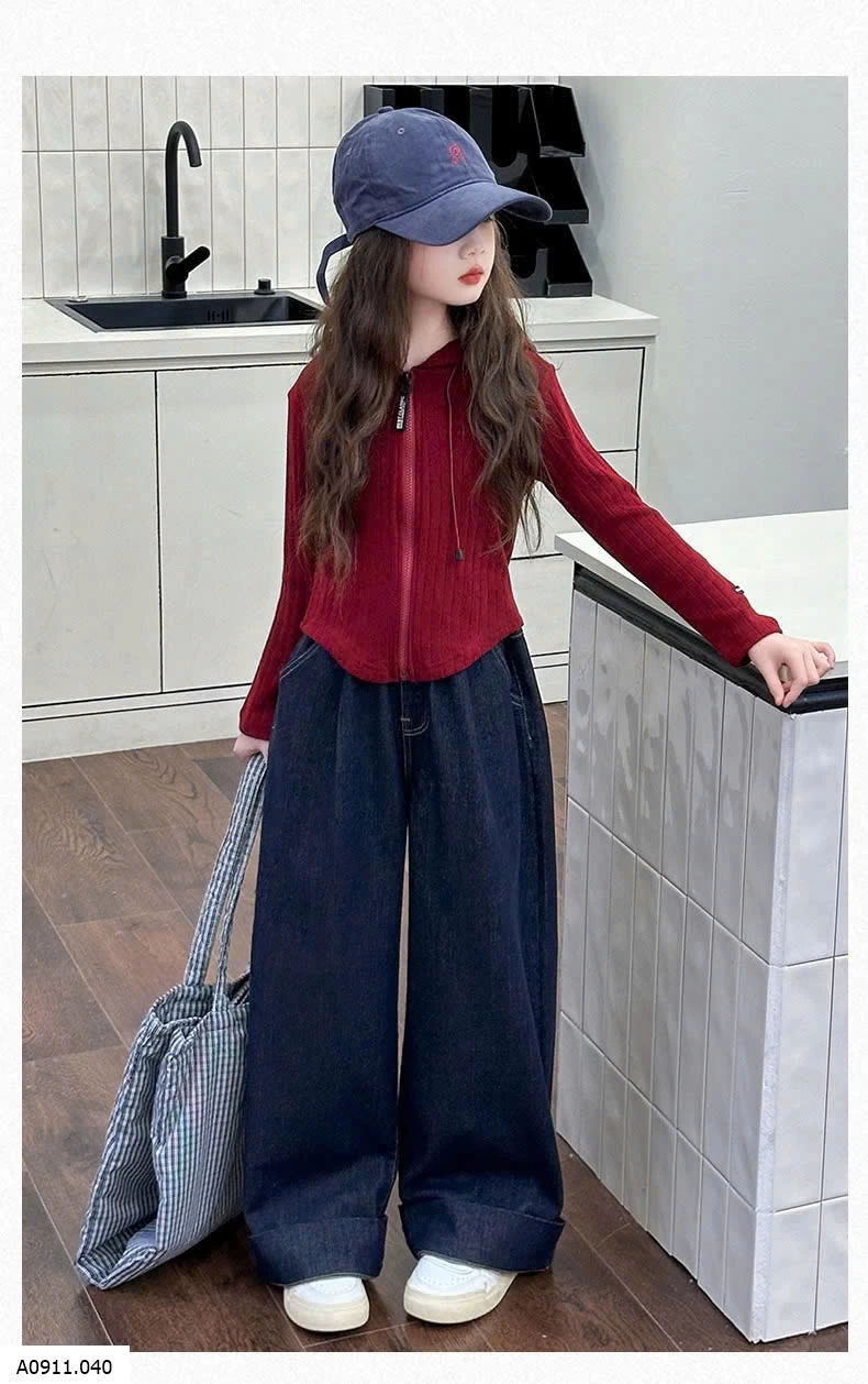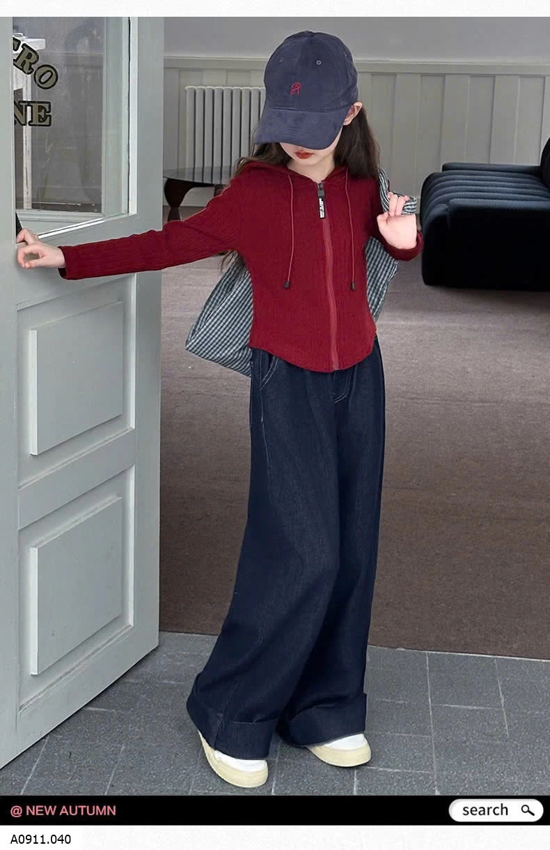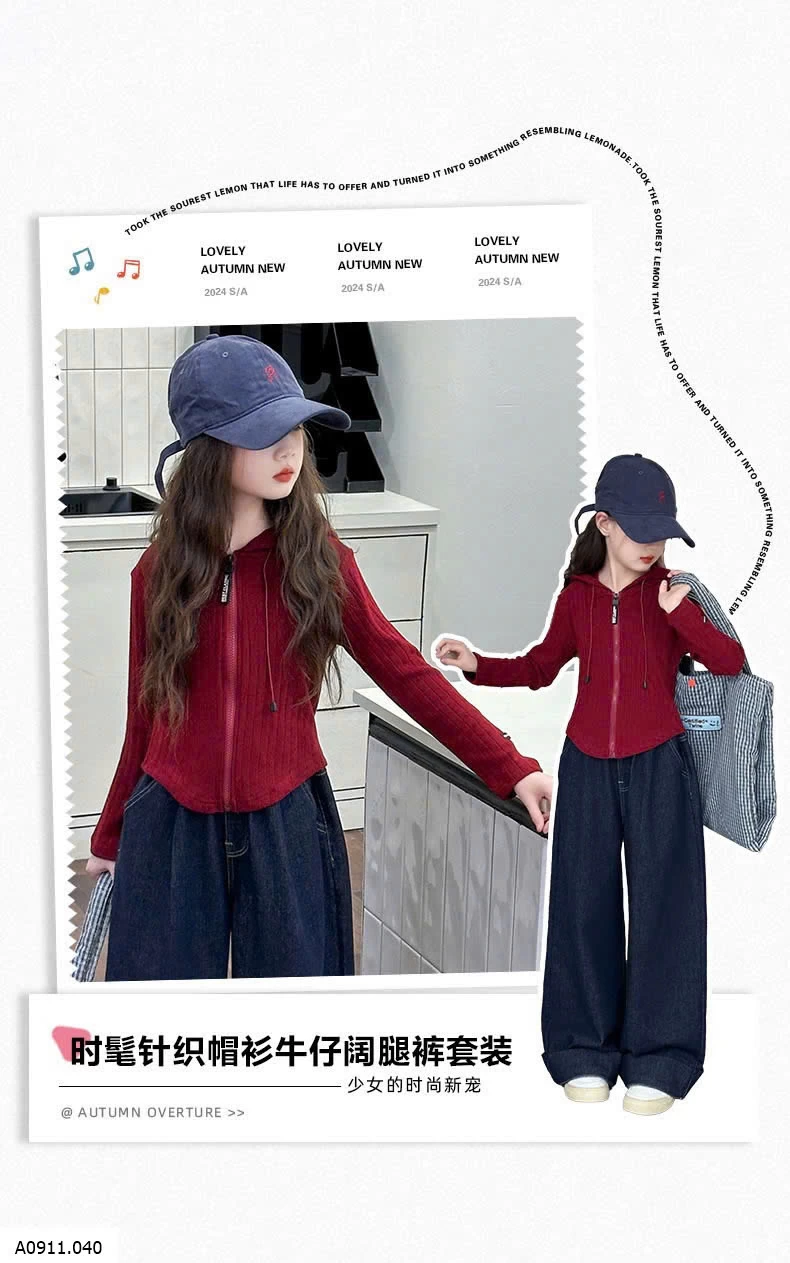 SET ÁO KHOÁC LEN ĐỎ MIX DENIM SUÔNG Giá sỉ áo 176k quần 155k