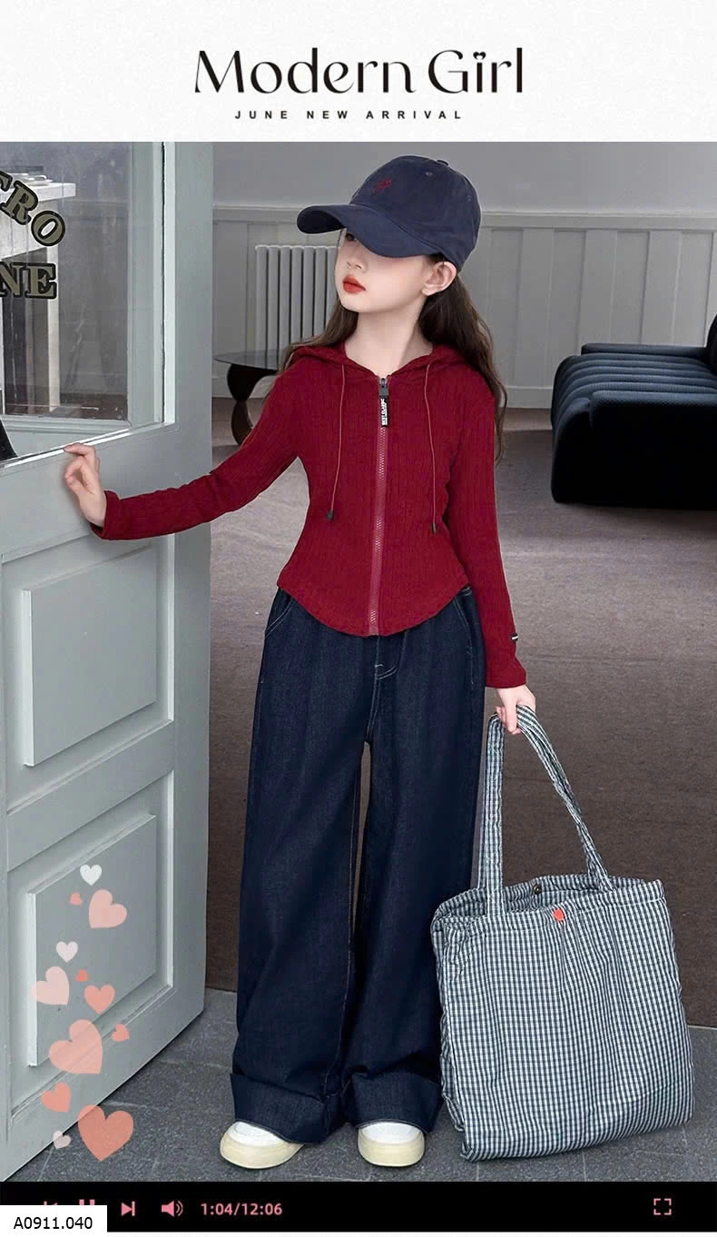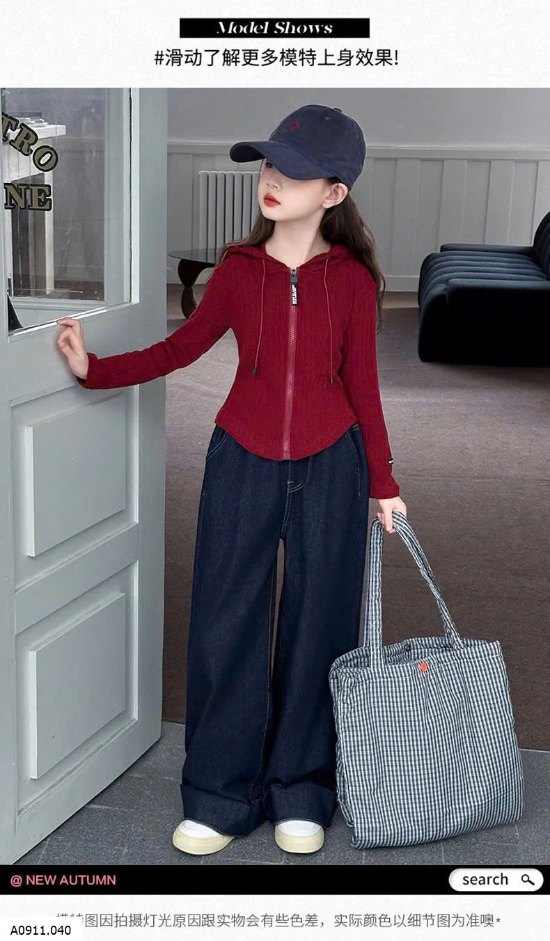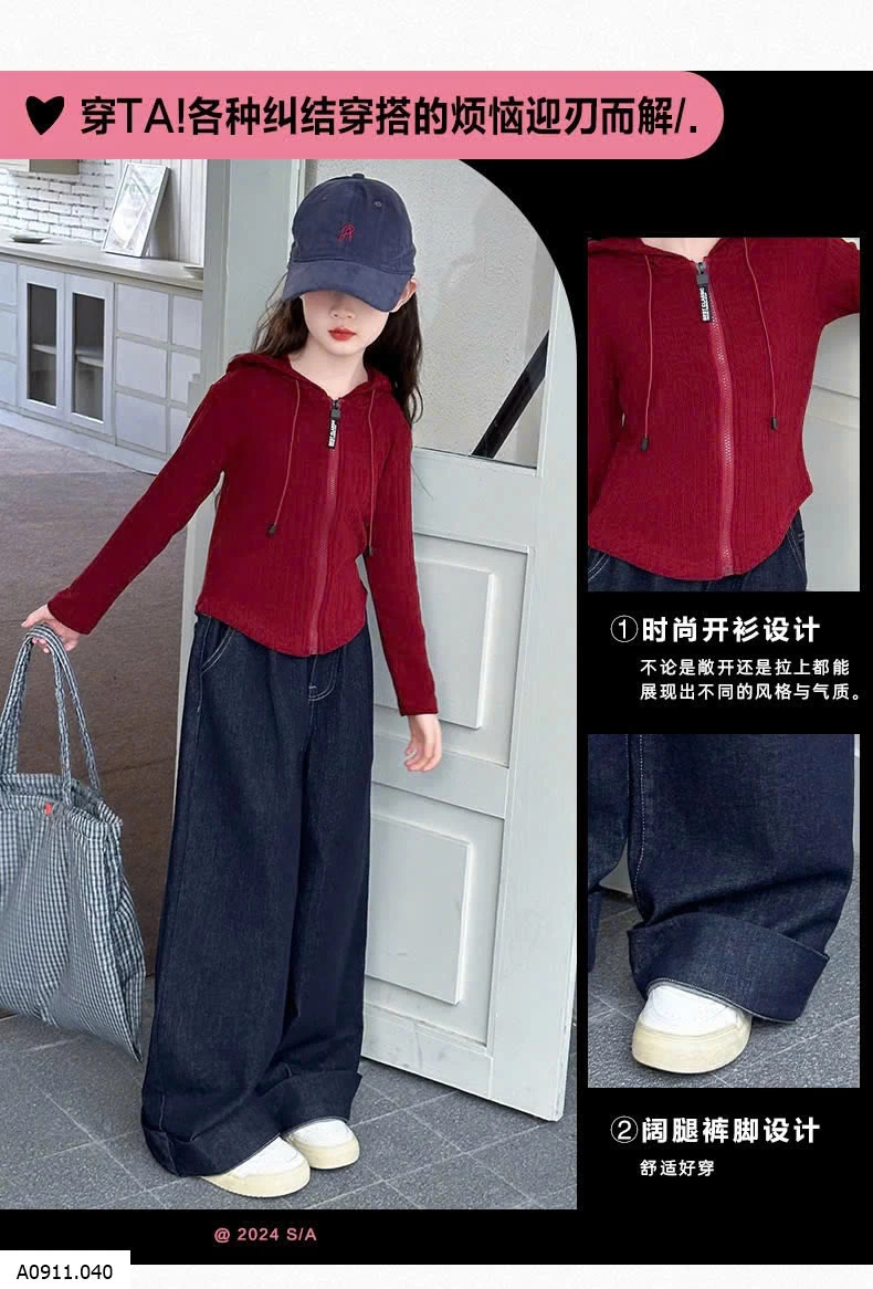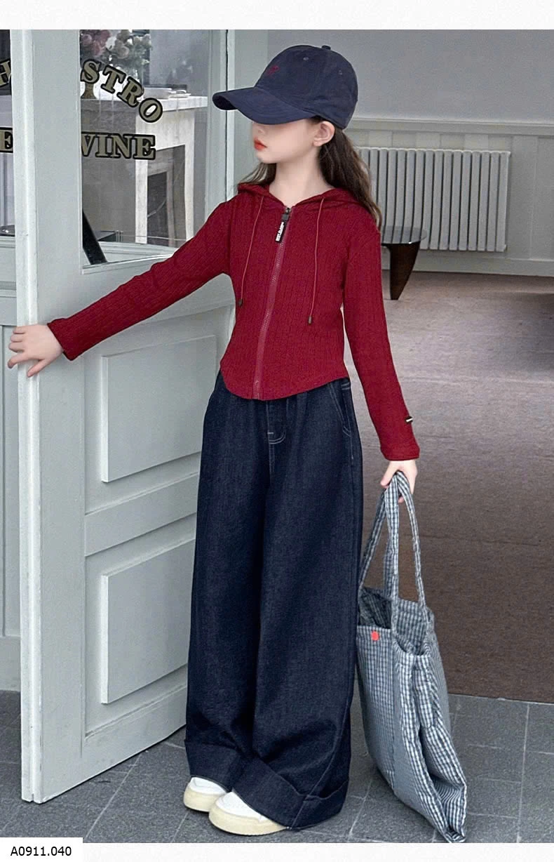 SET ÁO KHOÁC LEN ĐỎ MIX DENIM SUÔNG Giá sỉ áo 176k quần 155k