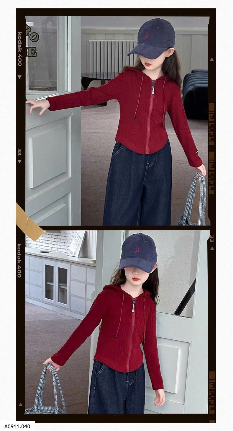 SET ÁO KHOÁC LEN ĐỎ MIX DENIM SUÔNG