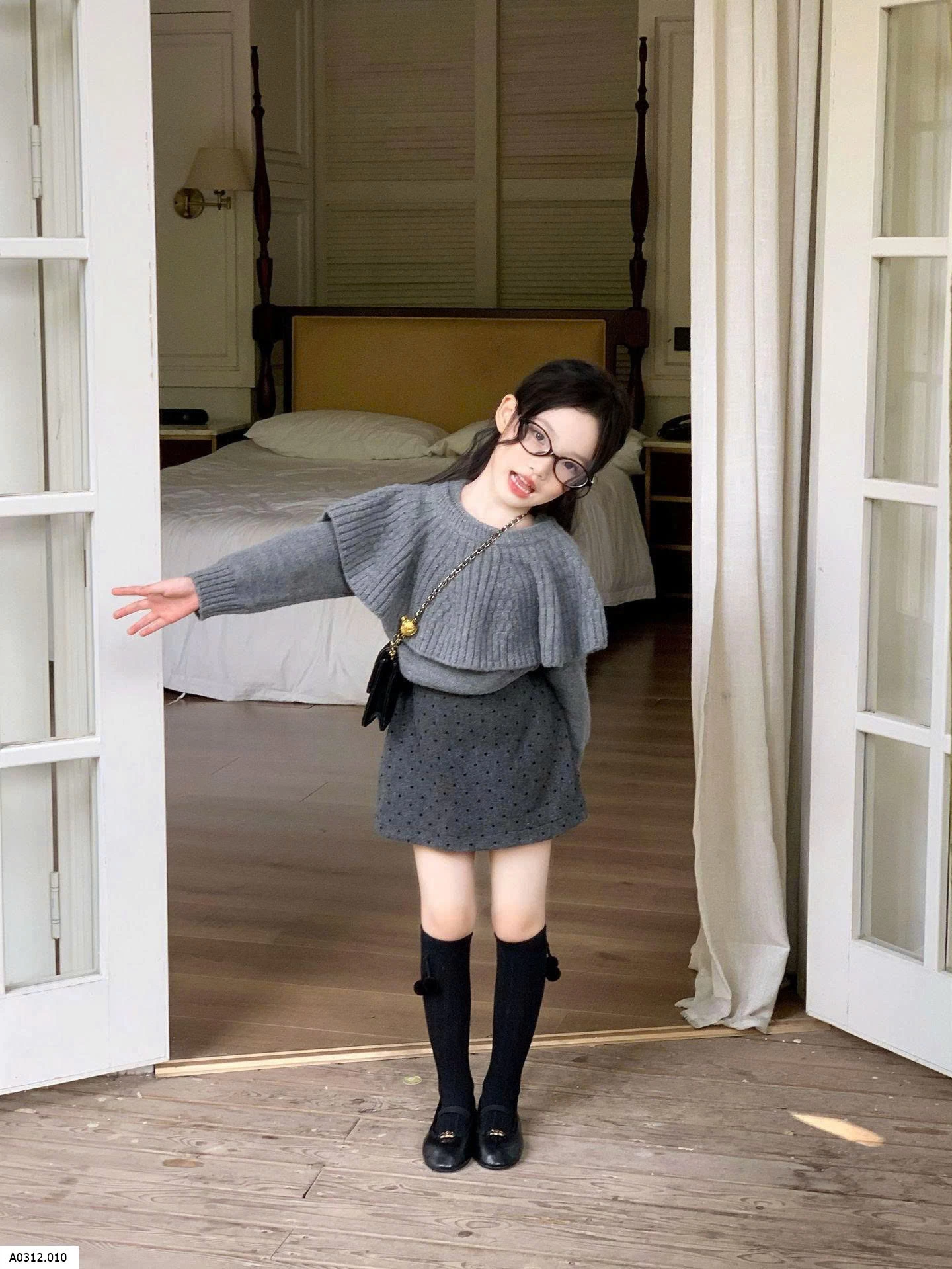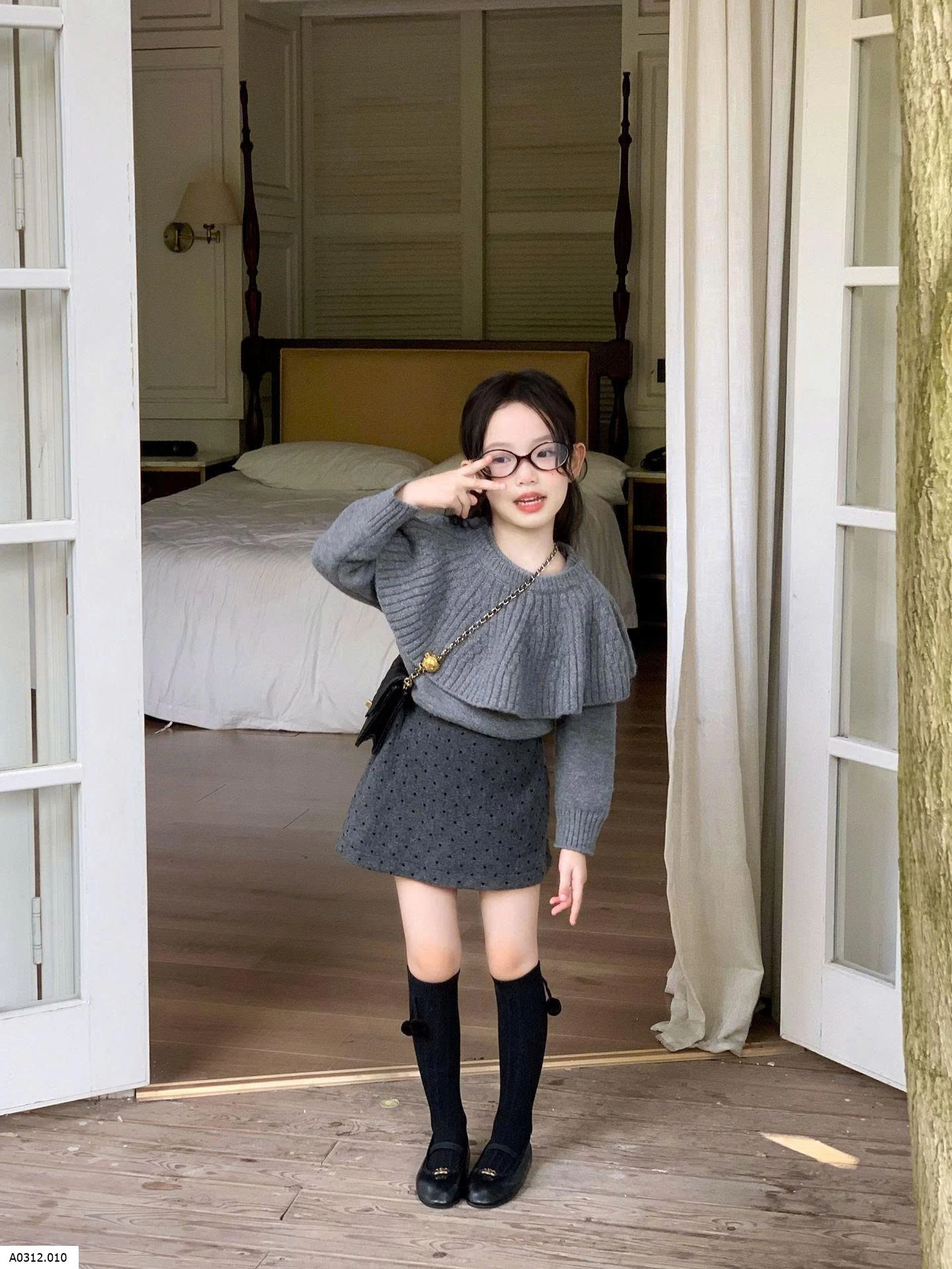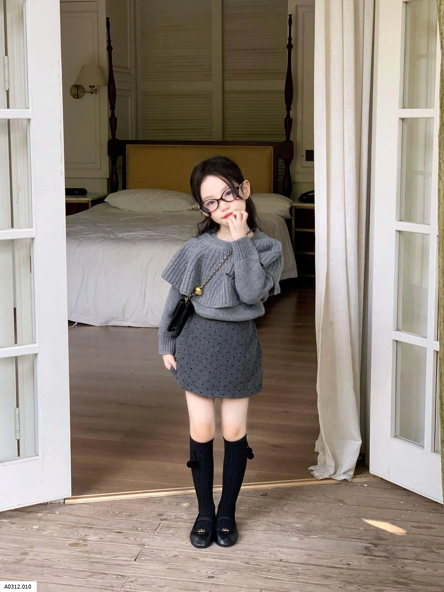 SET ÁO LEN MIX CHÂN VÁY CHẤM BI TONE XÁM Giá sỉ áo 224k , váy 139k