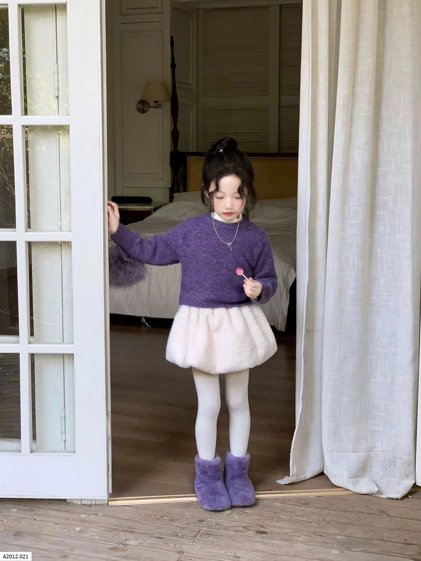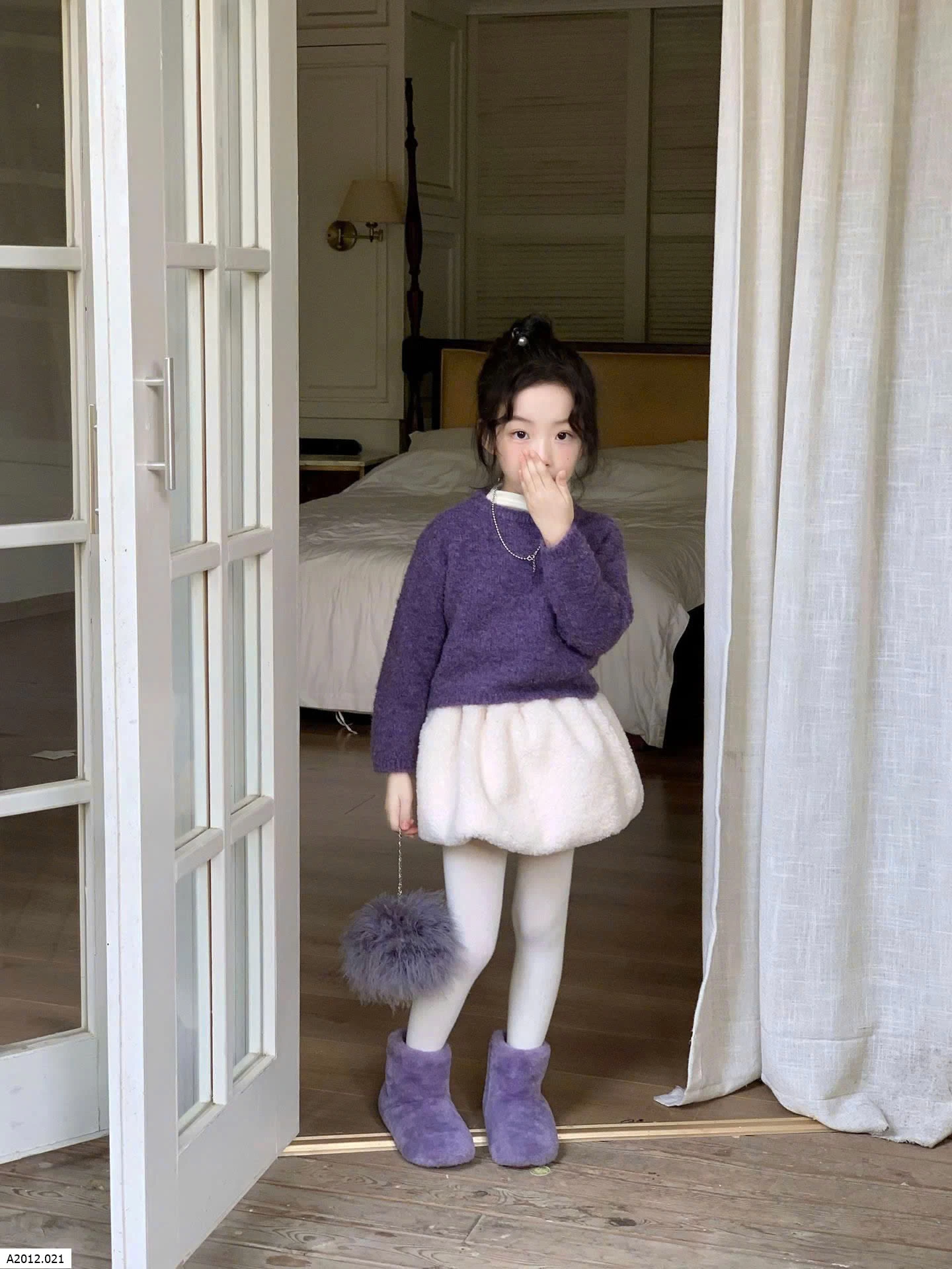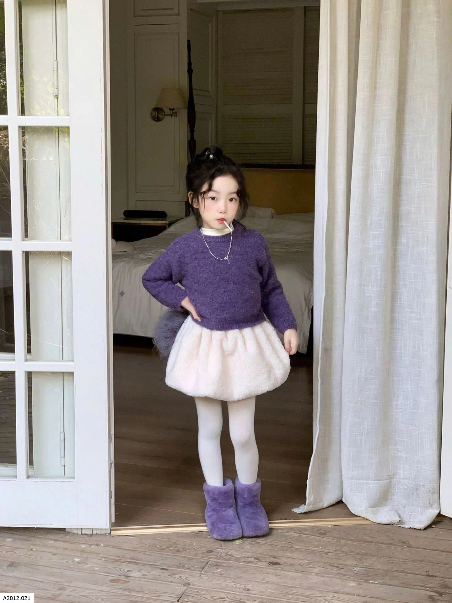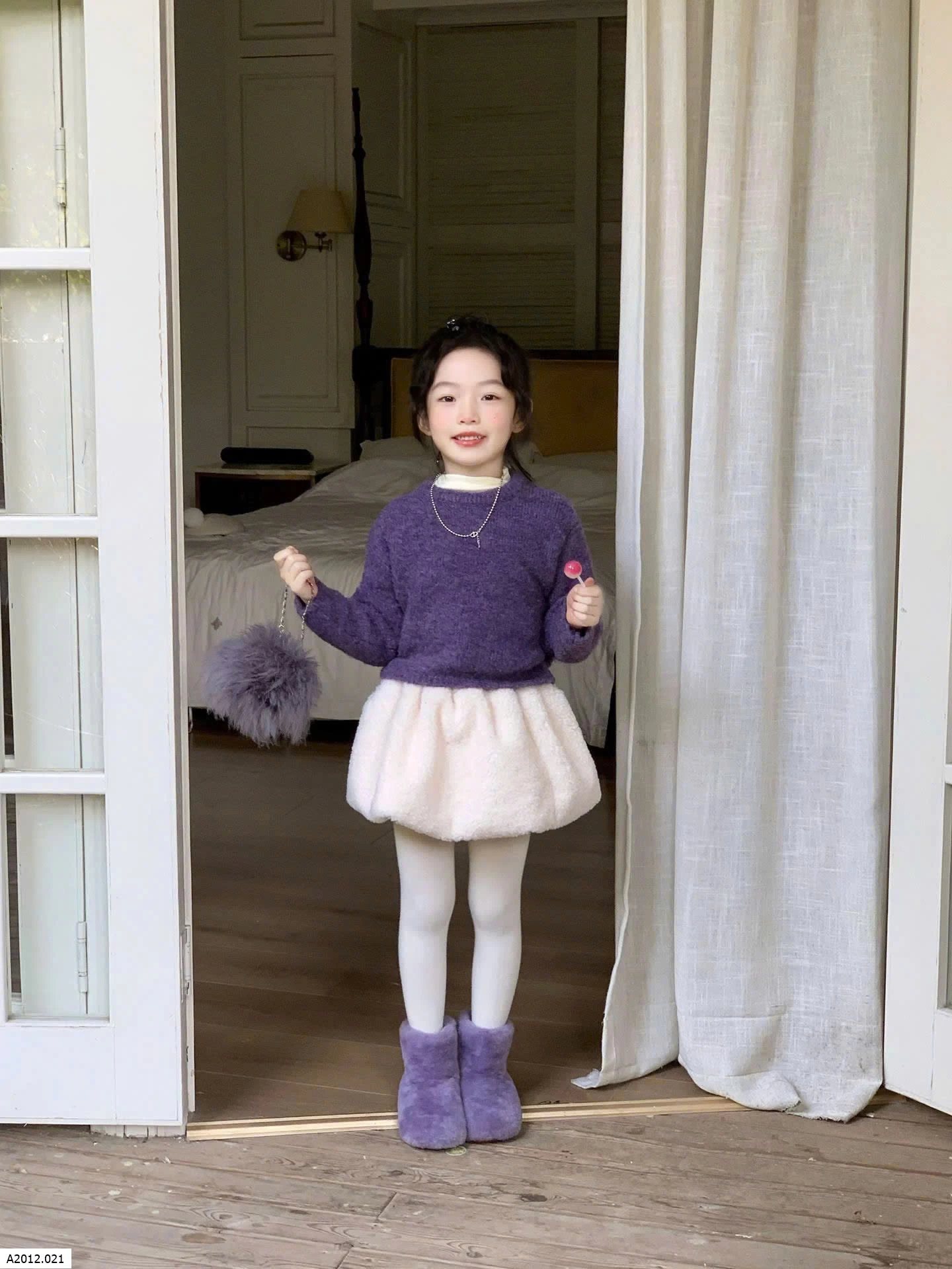 SET ÁO LEN TÍM PHỐI CHÂN VÁY BÍ BG Giá sỉ Áo: 175k Cv: 155k