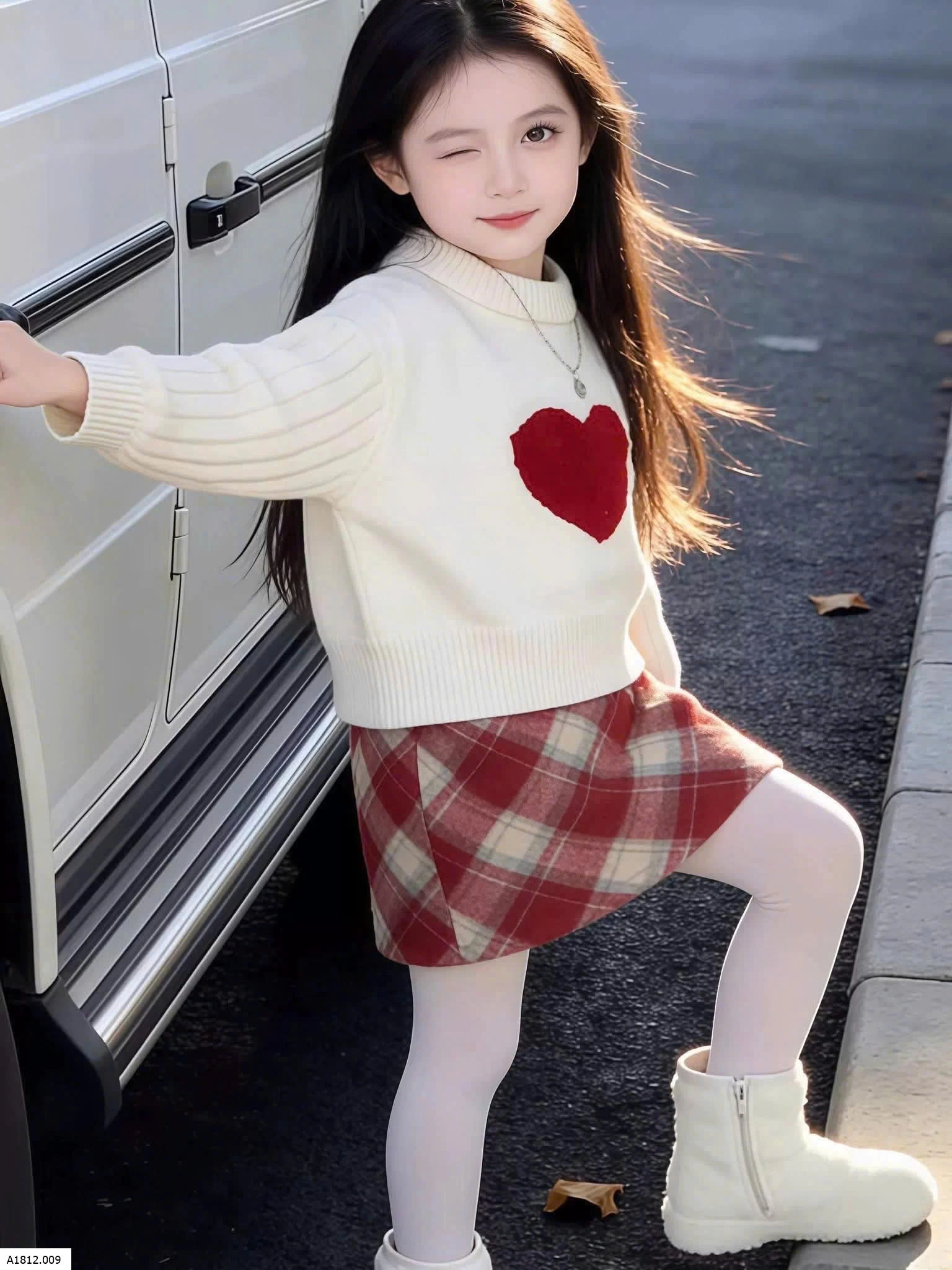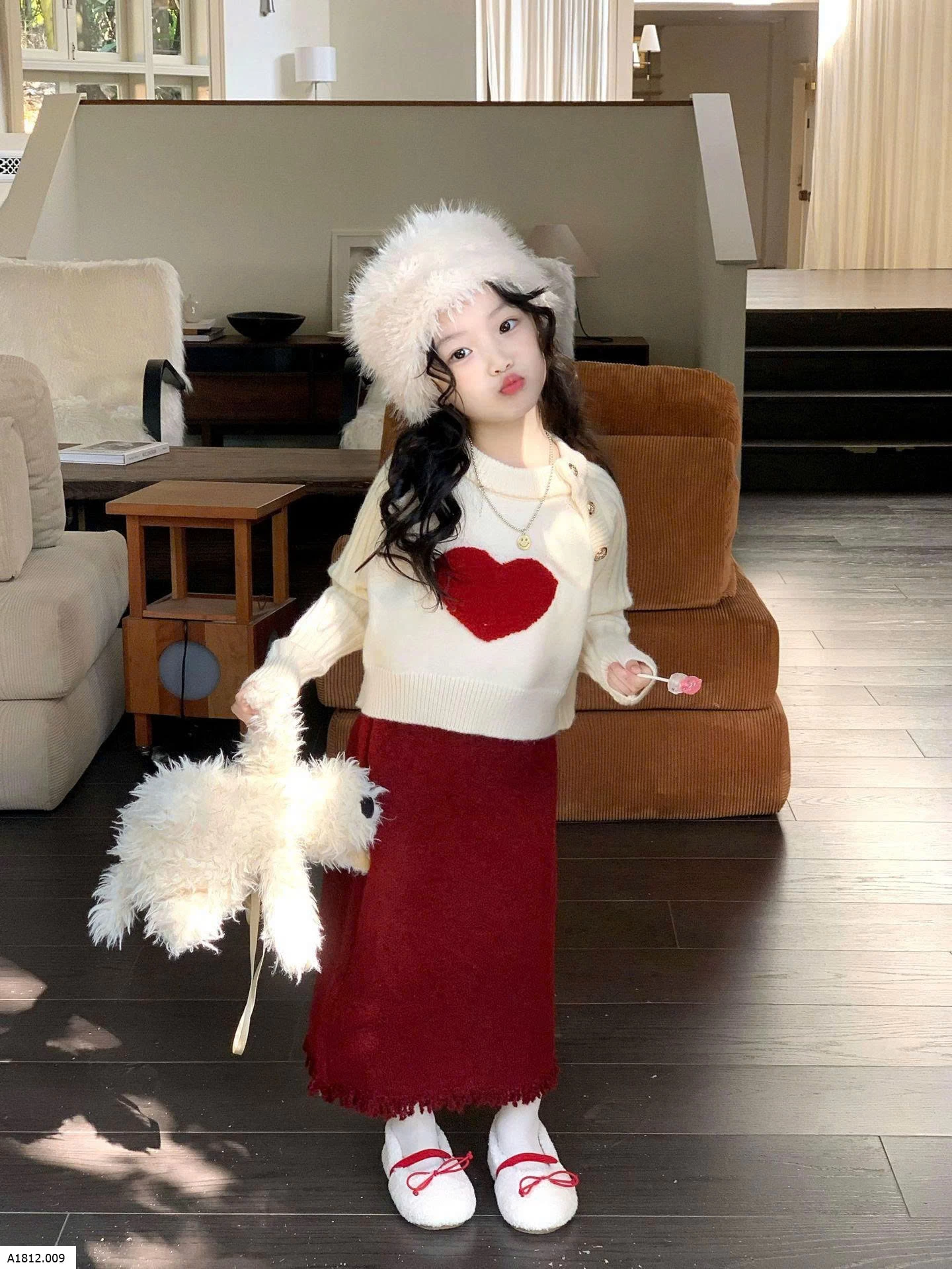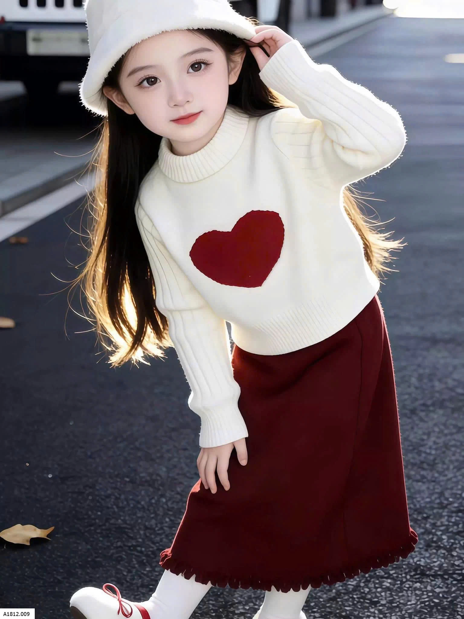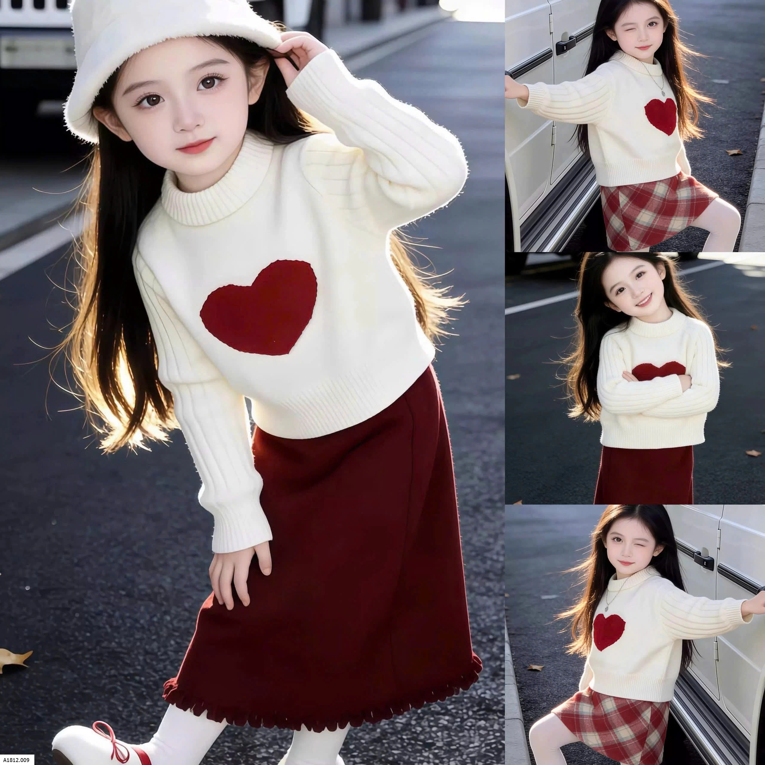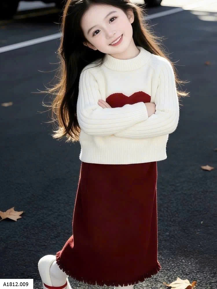SET ÁO LEN TIN MIX VÁY ĐỎ