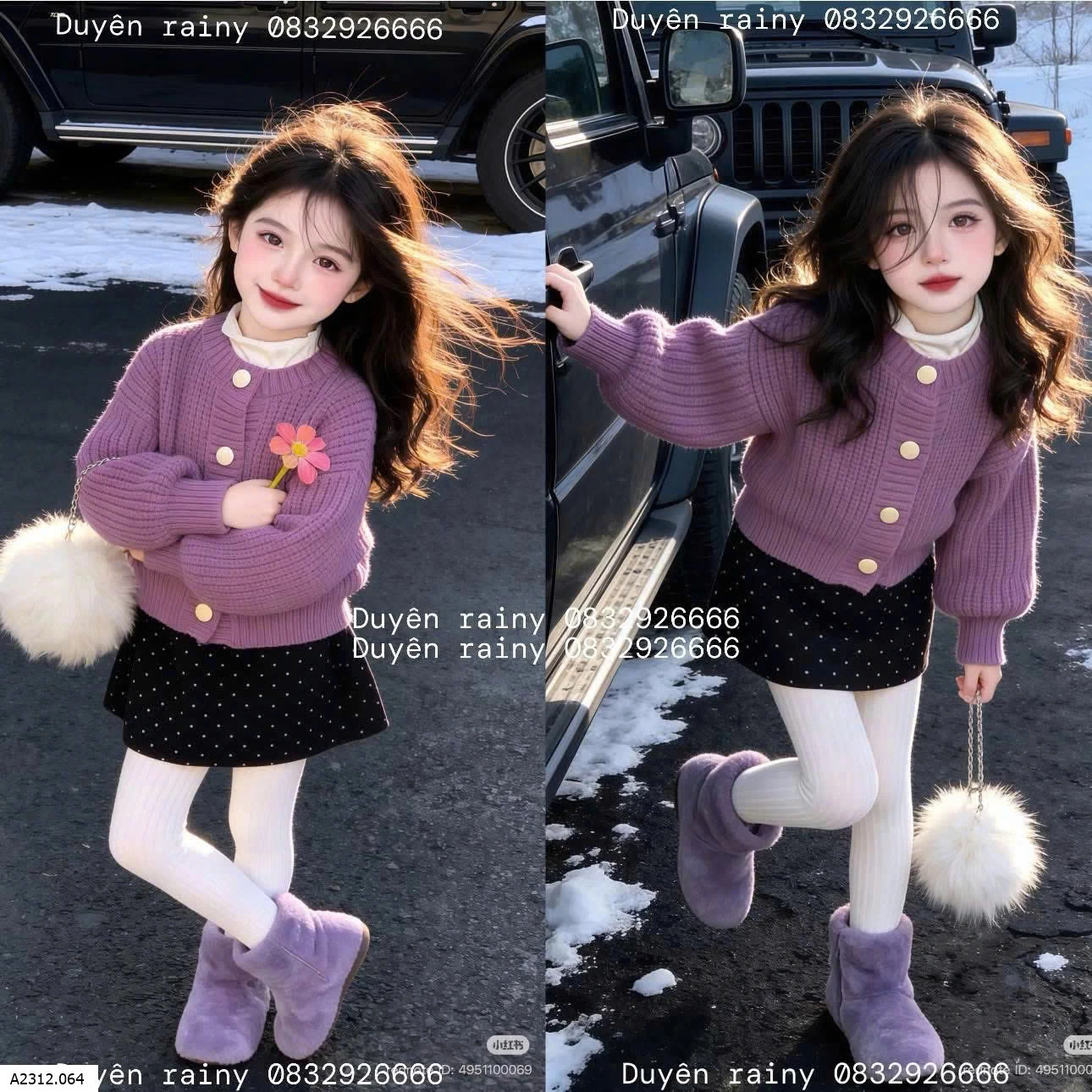 SET ÁO TÍM CHÂN VÁY CHẤM BI Giá sỉ Áo # 229k Chân váy #107k