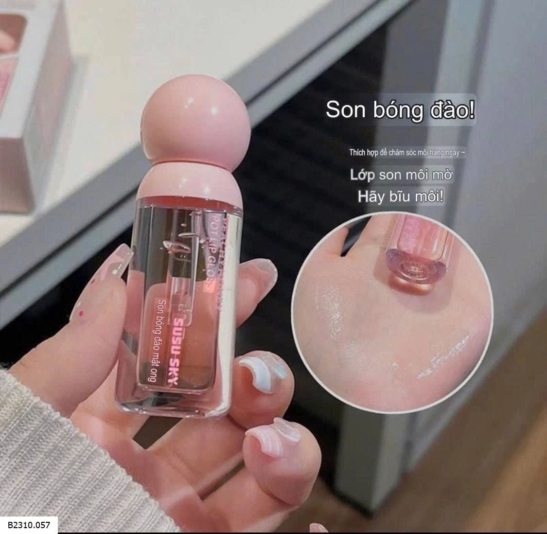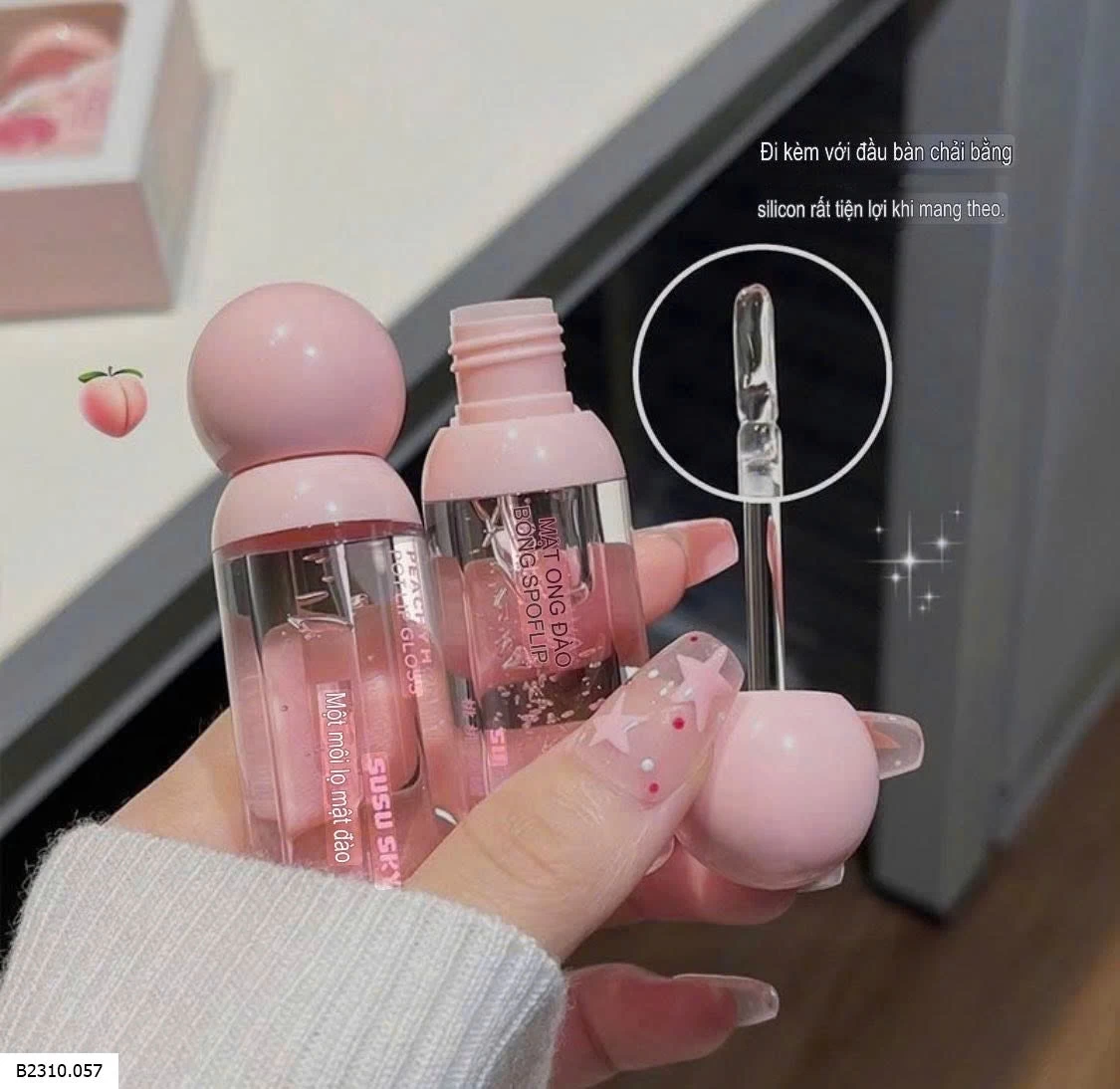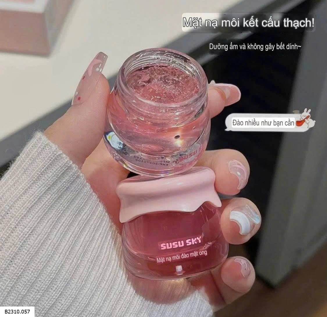 chiết xuất đào & mật ong giúp cấp ẩm sâu, dưỡng đôi môi căng mọn, tp thiên nhiên vô cùng lành tính kể cả c e da nhạy cảm