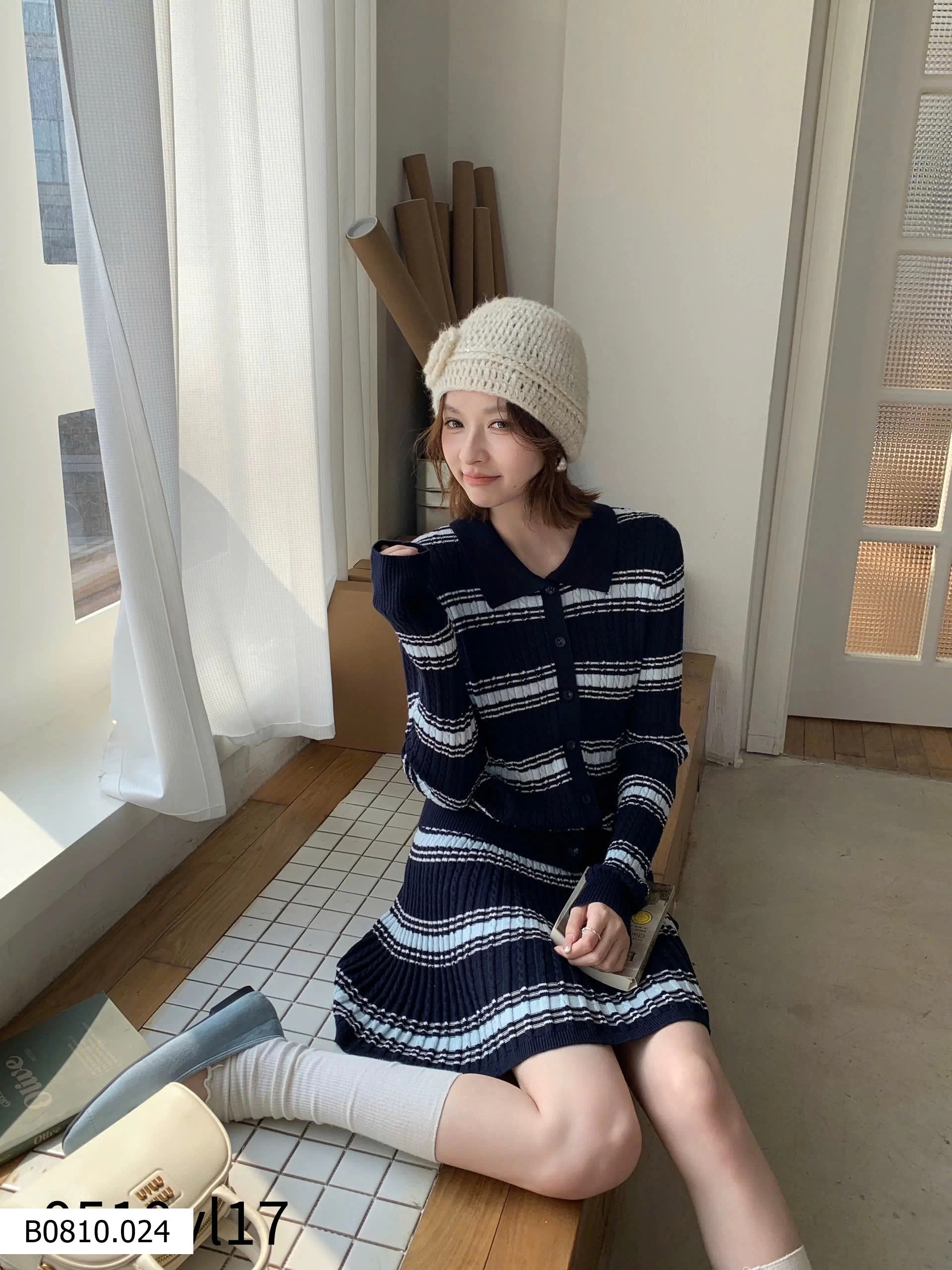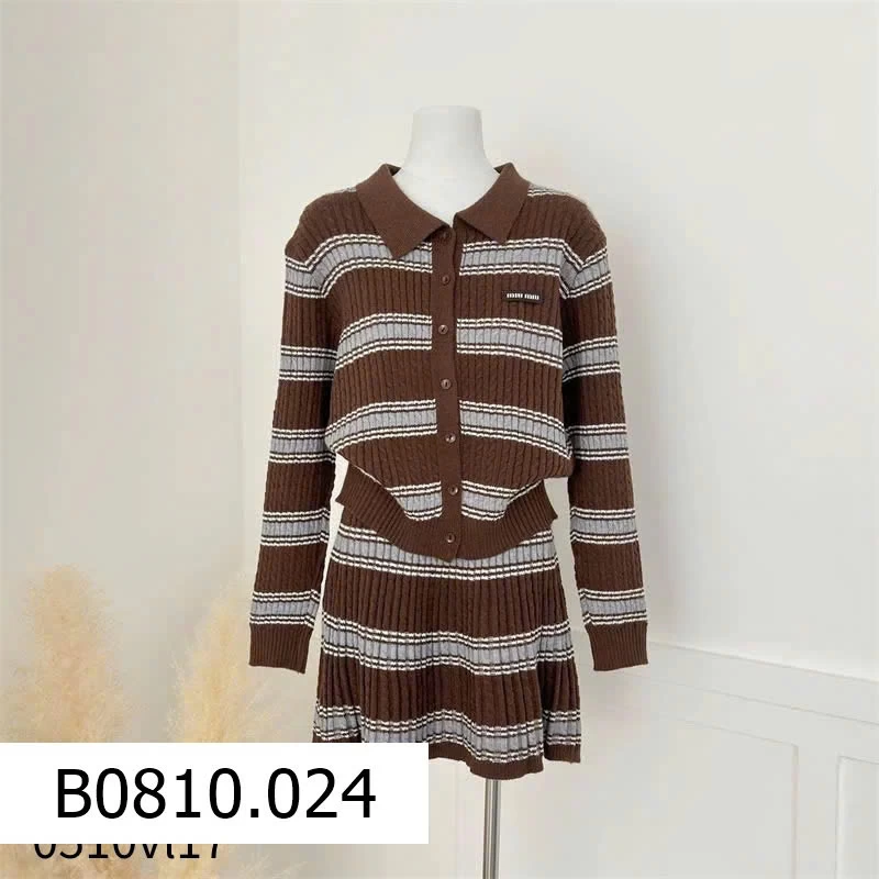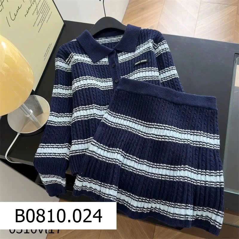 👉 Thiết kế áo len + chân váy kẻ sọc thời thượng, chuẩn style châu Âu