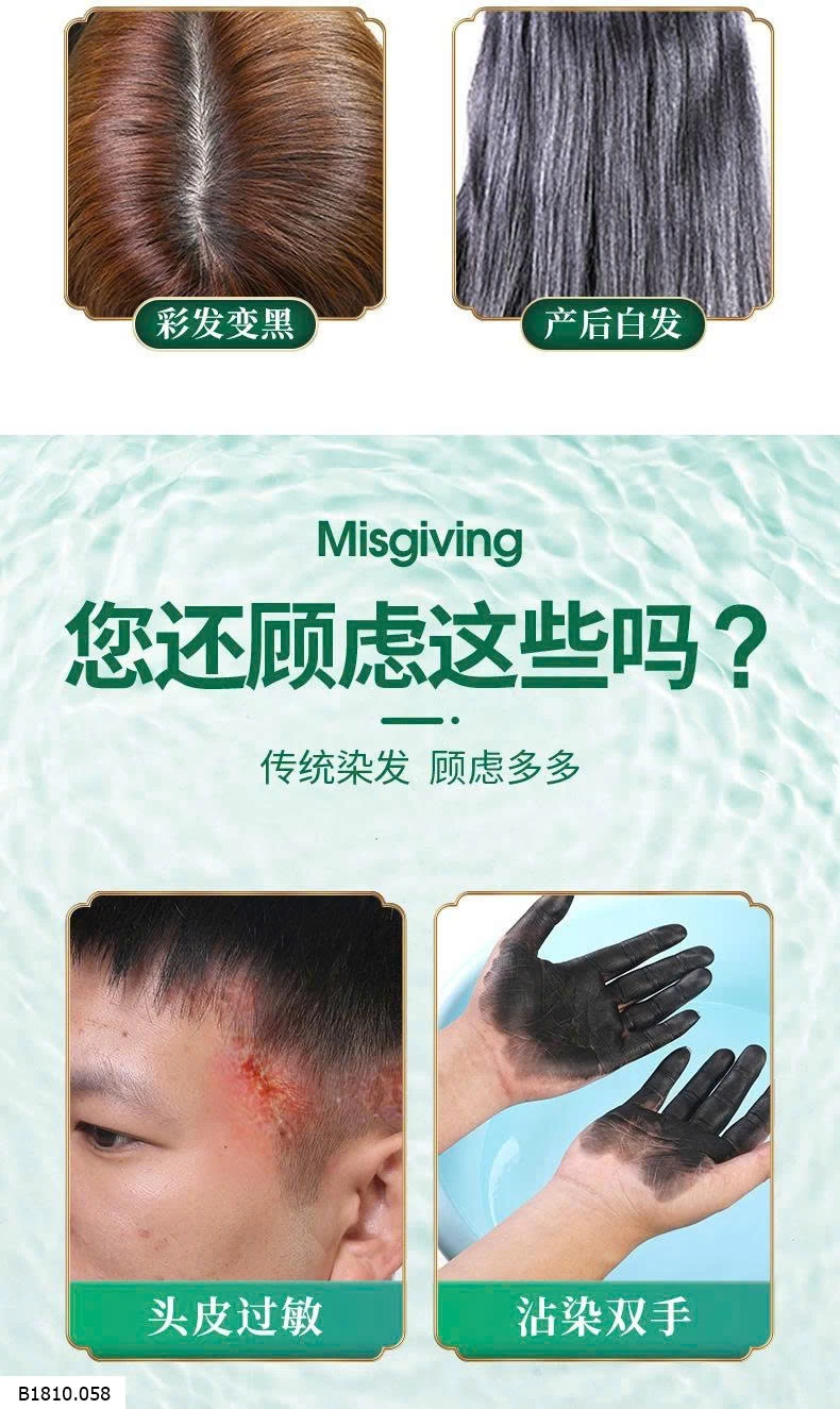 Thành phần chính : lá lúa đen, dầu hạt mè đen, nhân sâm, lá vườn ươm.