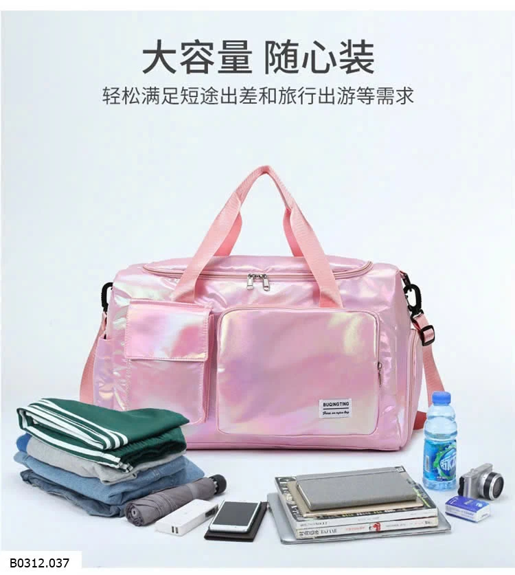 Túi du lịch nữ phong cách Hàn Quốc với chất liệu hologram bắt sáng, hiện đại và nổi bật.