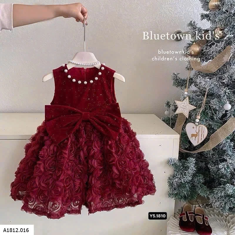 VÁY NHUNG ĐỎ HOA HỒNG 3D Giá sỉ 265k
